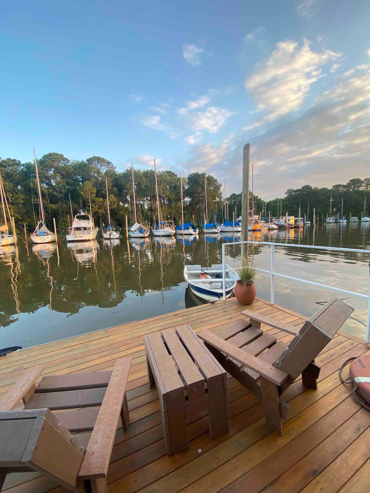 Enjoy Lake Paranoa in a complete and comfortable floating container house boat. During the day you can barbecue, swim, fish and practice water sports. In the late afternoon, admire the beautiful sunset over the lake. At night you can have dinner with calm waters over the light of the moon and stars, with a fire, wine, fondue and grill. It has a bedroom, a private bathroom, a kitchenette, a work station and a deck with a seating area and lounge chairs.