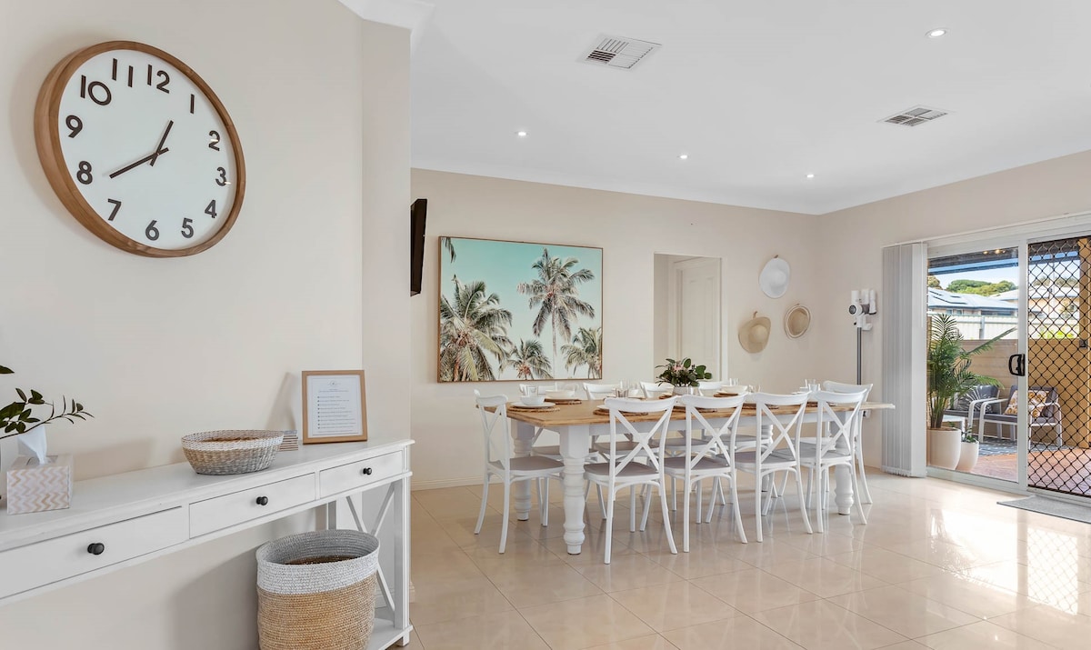 »HIŠKA OB BAZENU OB SONČNEM ZAHODU V GLENELGU« – dobrodošli v sanjskem prenočišču ob plaži z zasebnim bazenom, ki je prava redkost. Čudovito prenočišče s 3 spalnicami v Glenelg Beachu je kot nalašč za družine, skupine prijateljev ali pare, ki iščejo sproščujoč oddih. ☀️🏖️ – Ogromen 15-metrski zasebni bazen ob plaži - 24-metrska zabavna terasa ob plaži - Zasebna kotna namestitev s pogledom na ocean - 5 minut od restavracij Glenelg/Jetty Road/Henley Beach/Letališče - 15 minut do mestnega CBD-ja