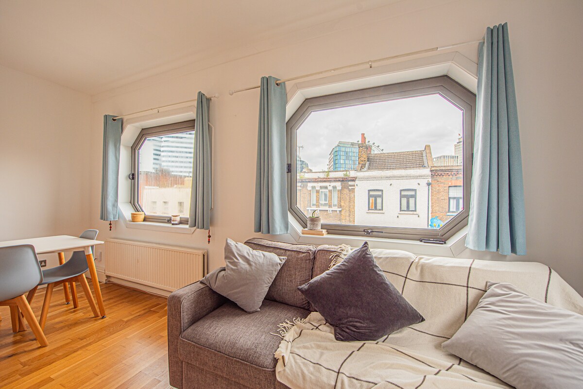 Welcome to this bright and modern 1-bed flat in the heart of Southbank an unbeatable location just a 5minute stroll to the London Eye, Big Ben, and Waterloo Station, perfect for exploring London. • Prime location near top attractions • Bright, modern living space with stylish decor and sofabed • Fully equipped kitchen for all your needs • Comfy bedroom with quality mattress and linens • Fast WiFi, smart TV • Easy access to shops, restaurants, and cultural venues