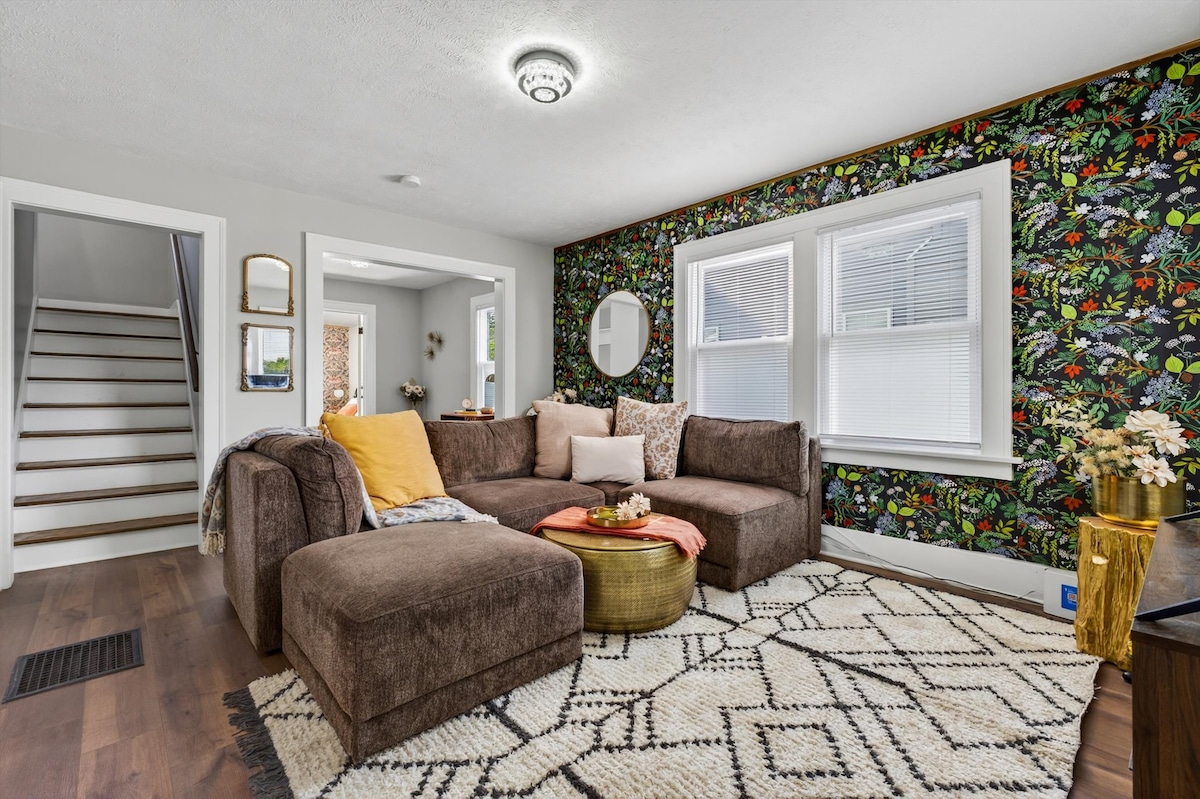 Dobrodošli v modrem in zlatem bungalovu, sveže oblikovanem prenočišču s 3 spalnicami, ki je od mest Notre Dame, Saint Mary's in Holy Cross. Sprehodite se ~15 minut (0,8 milje) do stadiona za dan tekme ali pa se odpravite 20 minut hoje do restavracij in sprehoda ob reki v središču South Benda. Imamo vzmetnice Casper, hiter Wi-Fi, pametno klimatsko napravo in ograjeno dvorišče za sproščanje, zaradi česar je bungalov popolna odskočna deska za družine, prijatelje ali obiskovalce kampusa, ki iščejo nepozabno, vrhunsko bivanje.