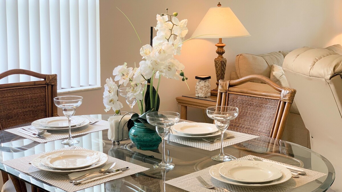 Uživajte v čudoviti zahodni obali Floride v svojem udobnem, zasebnem stanovanju . Ena spalnica, dnevna soba, kuhinjska niša z zajtrkovalnim barom, kopalnica s prho. Centralni zrak in ogrevanje. Brezplačen Wi-Fi. Zasebna vožnja in ograjen vhod. Vse, kar potrebujete, je tukaj, samo čaka na vaš prihod. To je čudovito bivališče v bližini vsega, kar boste potrebovali za uživanje na počitnicah na Floridi. Ni na voljo za goste z malčki.