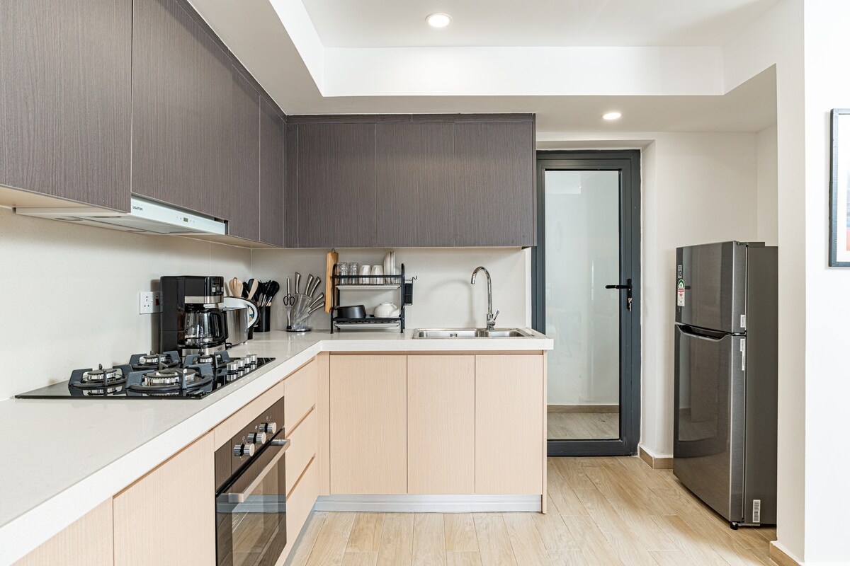 Dobrodošli v našem elegantnem stanovanju v višjem nadstropju v soseski Kilimani v Nairobiju. Uživajte v čudovitih razgledih na Kilimani in proti Westlandsu iz udobnega, premišljeno oblikovanega prenočišča. Stanovanje je le nekaj minut oddaljeno od trgovskih centrov Yaya Centre, Prestige Plaza in Carrefour na aveniji Rose Avenue, v bližini pa je veliko kavarn in restavracij, vključno s kitajsko četrtjo, ki je dosegljiva peš. Varnostna služba je prisotna non stop, dostop do storitve Uber je enostaven, hitra cesta pa omogoča hiter dostop do poslovnega središča in letališča JKIA, zato je to idealna baza za poslovna ali prostočasna bivanja.