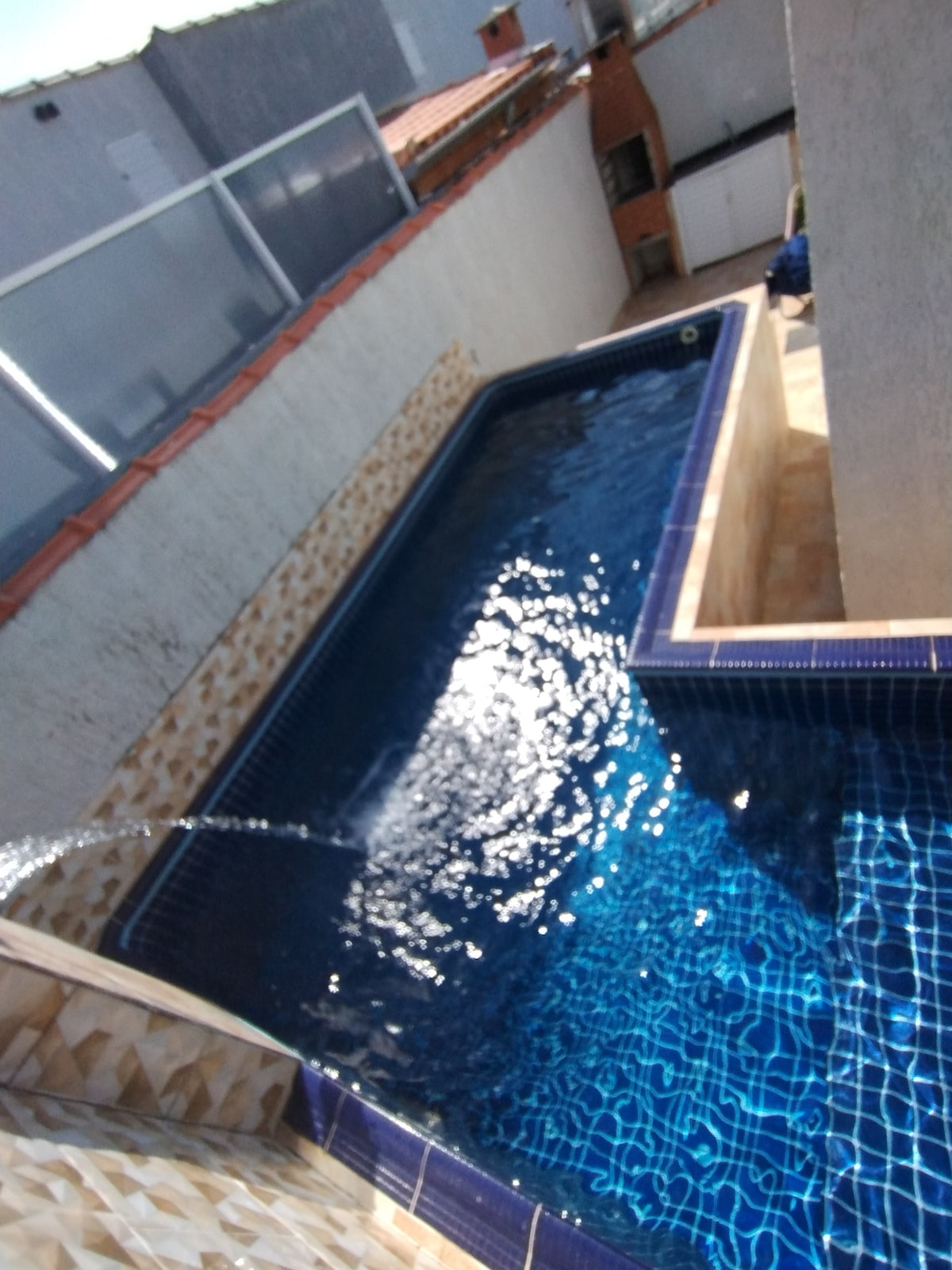 Stanovanje z bazenom, ki gleda na morje.