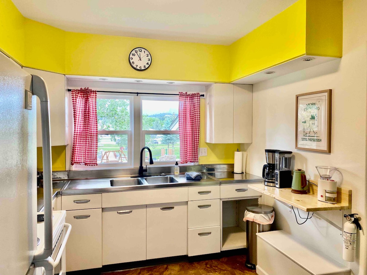 Nostalgično prikimavajte v vaš najljubši poletni tabor! Ta vesela hiša s 3 spalnicami, ki se nahaja na osrednji lokaciji, na novo prenovljena hiška iz leta 1930, spi 6 oseb in ponuja polno kuhinjo, 2 kopalnici, igralnico, veliko dvorišče z ognjiščem in žarom ter še več! - Pet minut hoje do nakupovanja v središču mesta, nagrajenih restavracij in Mickelson Trail - Deset minut vožnje do državnega parka Custer; 20 minut vožnje do narodnega spomenika Jewel Cave in narodnega parka Wind Cave - V neposredni bližini na novo prenovljenega mestnega parka in igrišča.