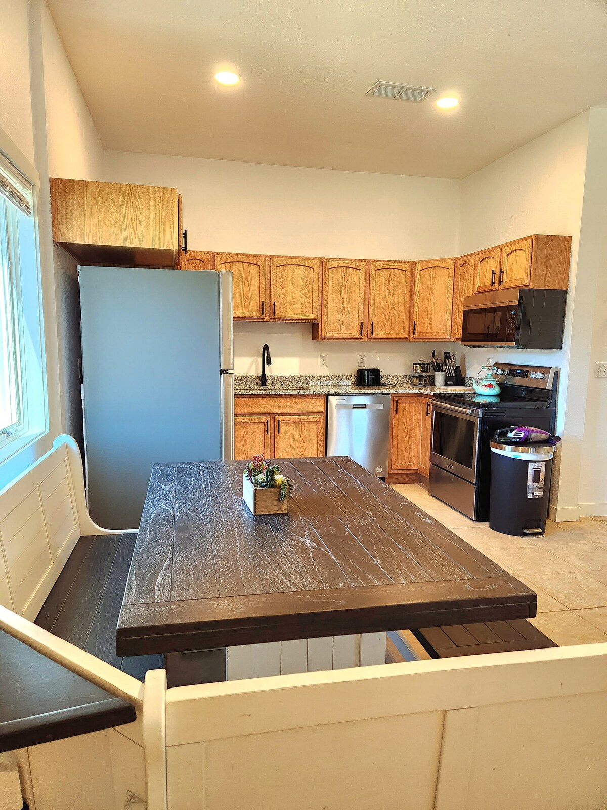 Na novo prenovljen Airbnbjev dupleks, ki se nahaja v čudovitem majhnem mestu. Ta očarljiv prostor s površino 400 kvadratnih metrov je idealen za dve osebi, vendar udobno sprejme do štiri osebe z raztegljivim kavčem v dnevni sobi. Uživajte v priročnosti kuhinjske niše za pripravo obrokov in prigrizkov med bivanjem. To prenočišče je dupleks. Drugo stran dupleksa oddaja mlada družina. Doživite čar življenja v majhnem mestu in rezervirajte bivanje v našem vabljivem Airbnbju še danes.