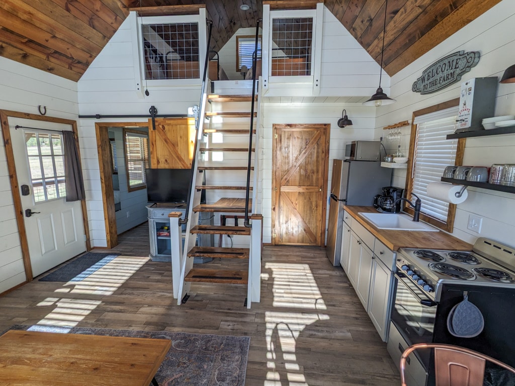 Dobrodošli na ranču Blue Tin Ranch, prizorišču dogodkov, ki ponuja edinstvena prenočišča. Kokošinjak velja za glamping. Ob rezervaciji tega prenočišča boste prejeli našo prenovljeno kokošje za piščance. Kovček je bil prepeljan s kmetije najinega dedka in preurejen v Airbnb/poletno kuhinjo. Imeli boste dve spalnici, dnevni prostor in majhno kuhinjo samo zase. Do skupnih kopalnic vas loči le kratek sprehod. Družite se v soseski ali raziščite vse, kar ponuja namestitev! Piščanci niso vključeni