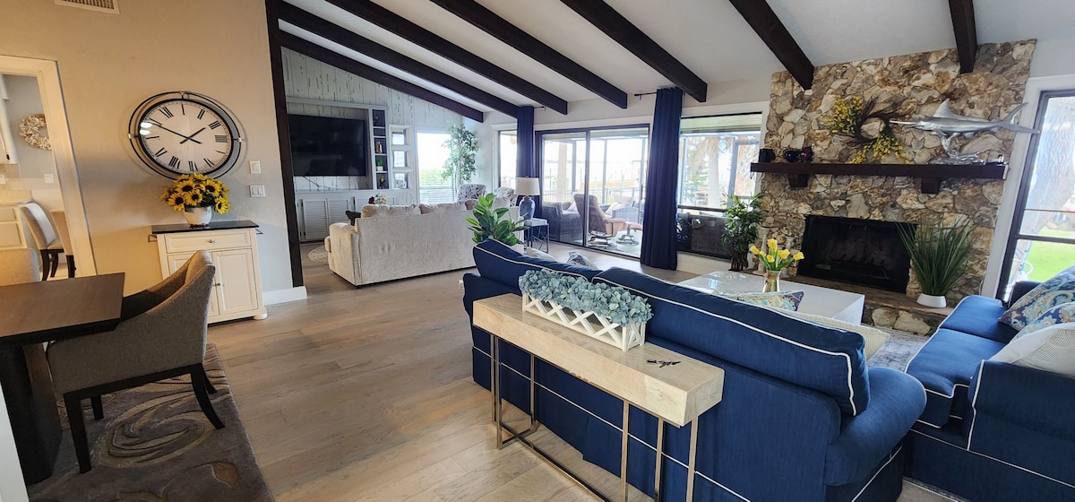 LOKACIJA! LOKACIJA! Všeč vam bo ta sproščena hiška na plaži z malo sodobnega in malo zena! Bleščeče čist, le 5 min hoje do plaže, pol ulice do glavne ulice in pogled na reko! Osredotočeni na sprostitev in zabavo, načrtujte iskanje edinstvene opreme! Alexa, bluetooth kopalniško ogledalo z nastavitvami za ličenje, masažna prha, masažni stol, električni kamin, svetleča kopalnica. (Obožujem pripomočke!) Retro Nintendo, namizne igre, knjige!