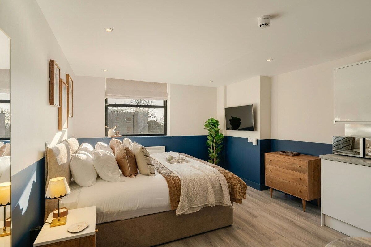 Vaše stanovanje, Clifton Village, je aparthotel, obložen s peščenjakom, s 34 svežimi in živahnimi garsonjerami, ki se nahajajo v vasi Clifton. Kje: Vaše stanovanje, 26-28 Regents Street, Clifton, Bristol, BS8 4HG Za največ 2 gosta. Gostje imajo brezplačen dostop do skupnega delovnega prostora v pritličju.