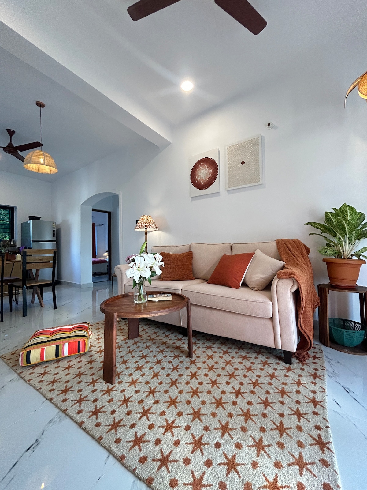 Villa Amarelo , North Goa The Boho-luxury private pool villa stands at a calm private location with the view of the lush greens of the hills and the paddy fields at the rear and stunning sunsets at the front.Located 30 mins from the new MOPA airport , a 10 min drive away from the closest beaches and a 5-min drive from the Chapora river banks, the villa lies at the centre for travellers willing to explore the beaches at Morjim, Ashwem, Arambol, and Vagator, Anjuna, Baga, Calangute alike.