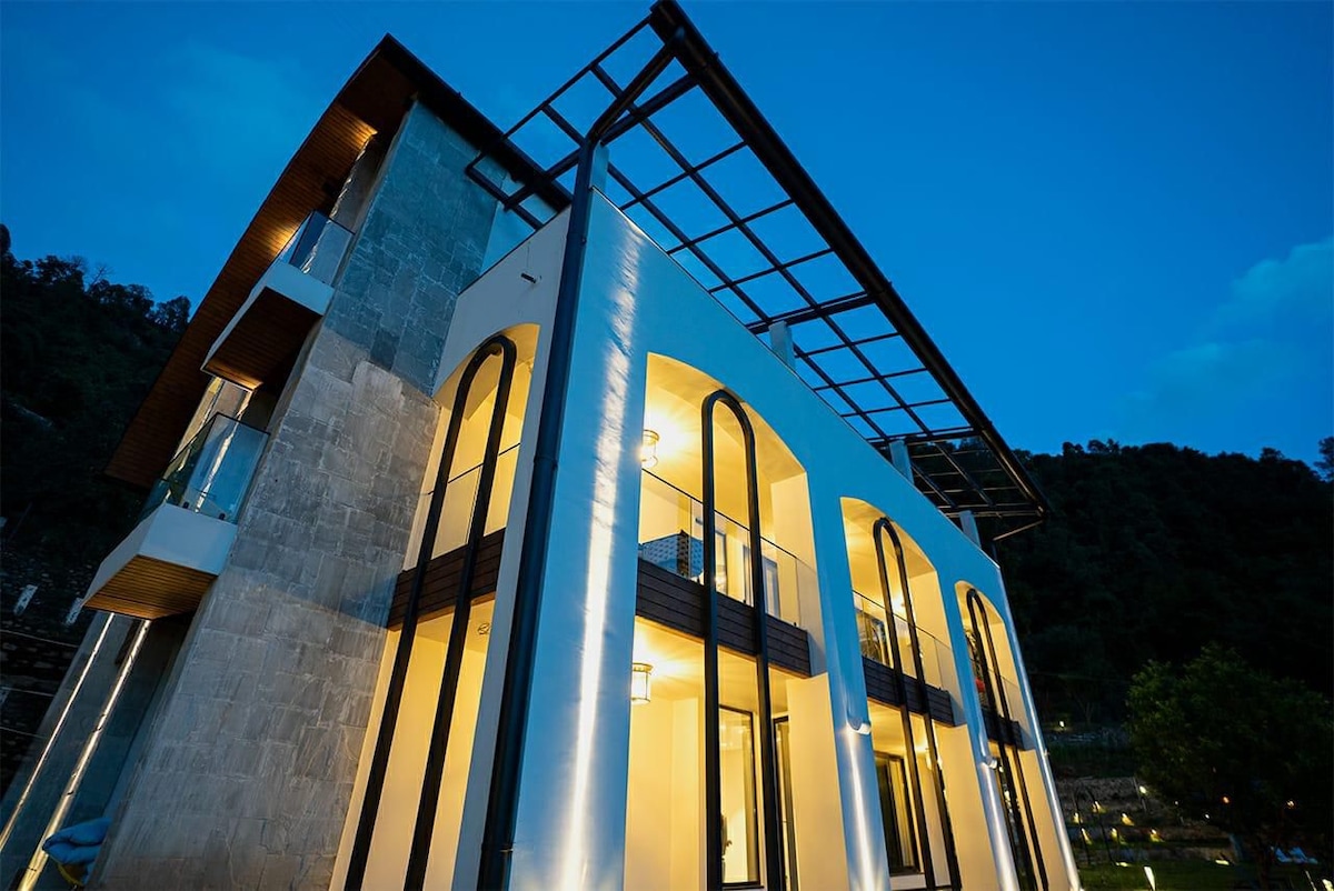 Pobegnite v to mirno vilo v skandinavskem slogu v Nainitalu, kjer se elegantno nordijsko oblikovanje sreča z gorskim šarmom. Sprostite se na zasebnem vrtu, sprostite se na udobni zunanji sedeži in uživajte v osupljivem razgledu na hrib. Vsaka kopalnica ima razkošen masažni bazen in je popolnoma ogrevana za celoletno udobje. To mirno zatočišče, ki je kot nalašč za ljubitelje narave in oblikovanja, združuje sodobno opremo z mirno lepoto hribov.