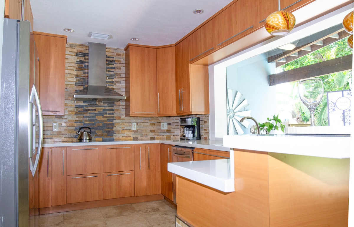 Private tropical retreat in Miami. 4BR · 2BA · sleeps 8. Heated pool, fire pit lounge, fully equipped outdoor kitchen & covered terrace. Master bath with spa rainfall shower. Surround sound indoors & outdoors. Stainless kitchen with pool views. Family-ready: crib, playpen, highchair, infant car seat & safety gate. Free parking · Fast WiFi · Self check-in. Superhost 4.93★ · 155 reviews. Quiet neighborhood.