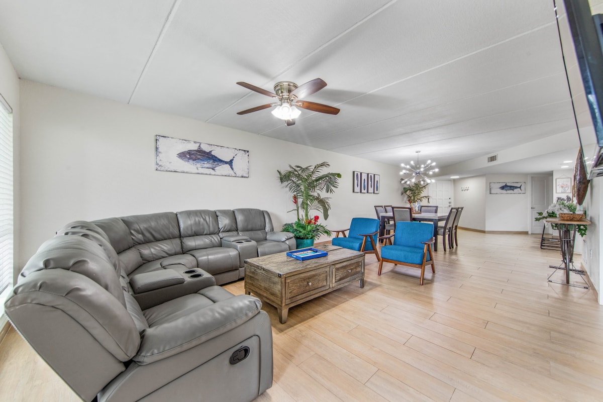 Lastniško stanovanje z zasebnim balkonom tik ob plaži! Nedavno posodobljena obalna dekoracija. Stopnice do plaže skozi ograjen bazen in območje masažne kadi ter žar. Spi 4 osebe, zakonska postelja (Queen) in zakonska postelja (Queen). 50" pametna TV, kabelska televizija Spectrum in Showtime. Visoka hitrost WI-FI POVEZAVE