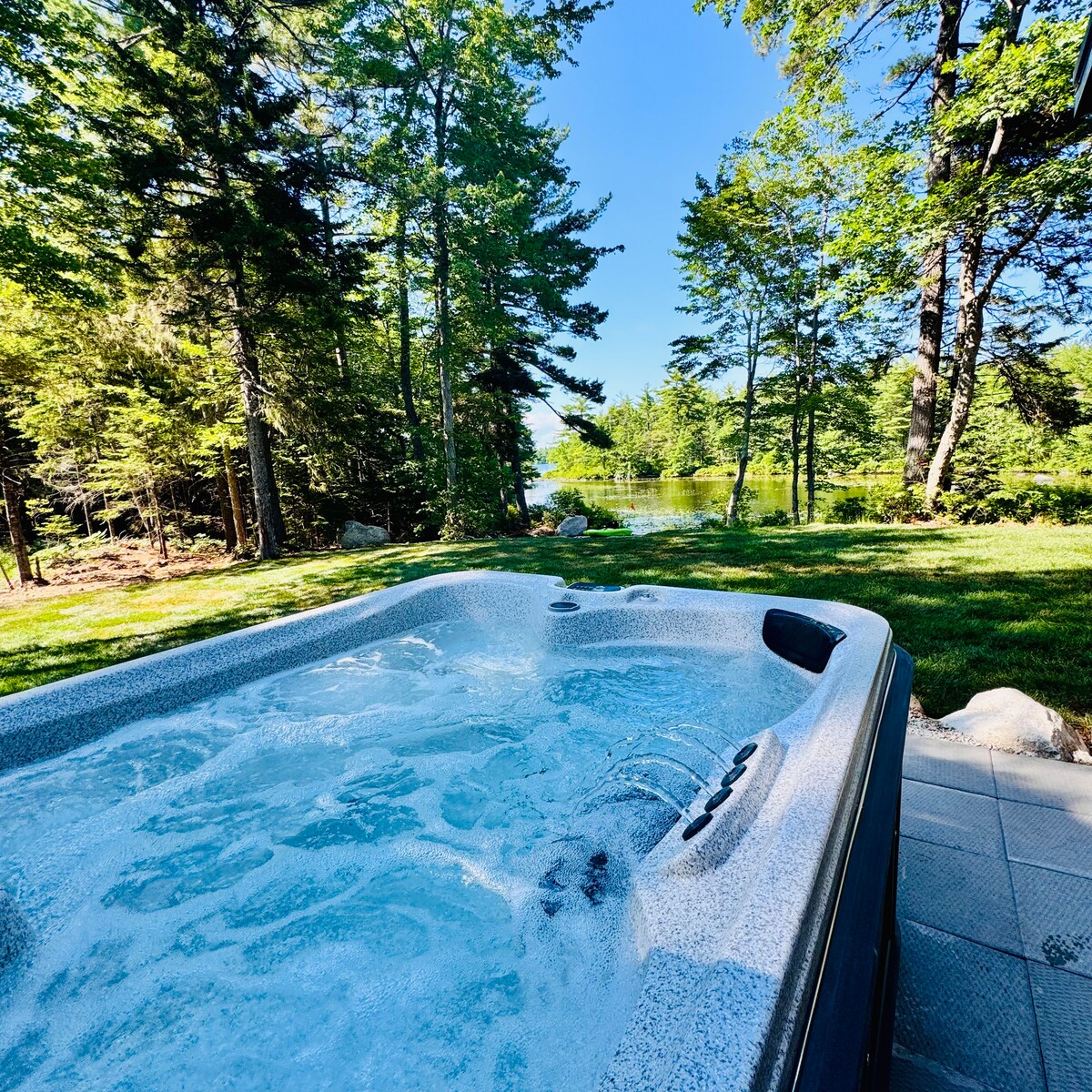 Waterfront Cottage: Huge deck, sun sets, Private Hot Tub: 6 Person tub for 2. Panoramic Water Views: Modern Cabin: privacy and a peaceful environment. Large Deck: outdoor living space both you can take in the sun or retreat into the share. Nature Retreat with wildlife Romantic Escape: for couples, Heated floors, Shower tower, queen master, an extra guest could sleep on the couch. Super private chefs kitchen. Well equipped for all seasons.