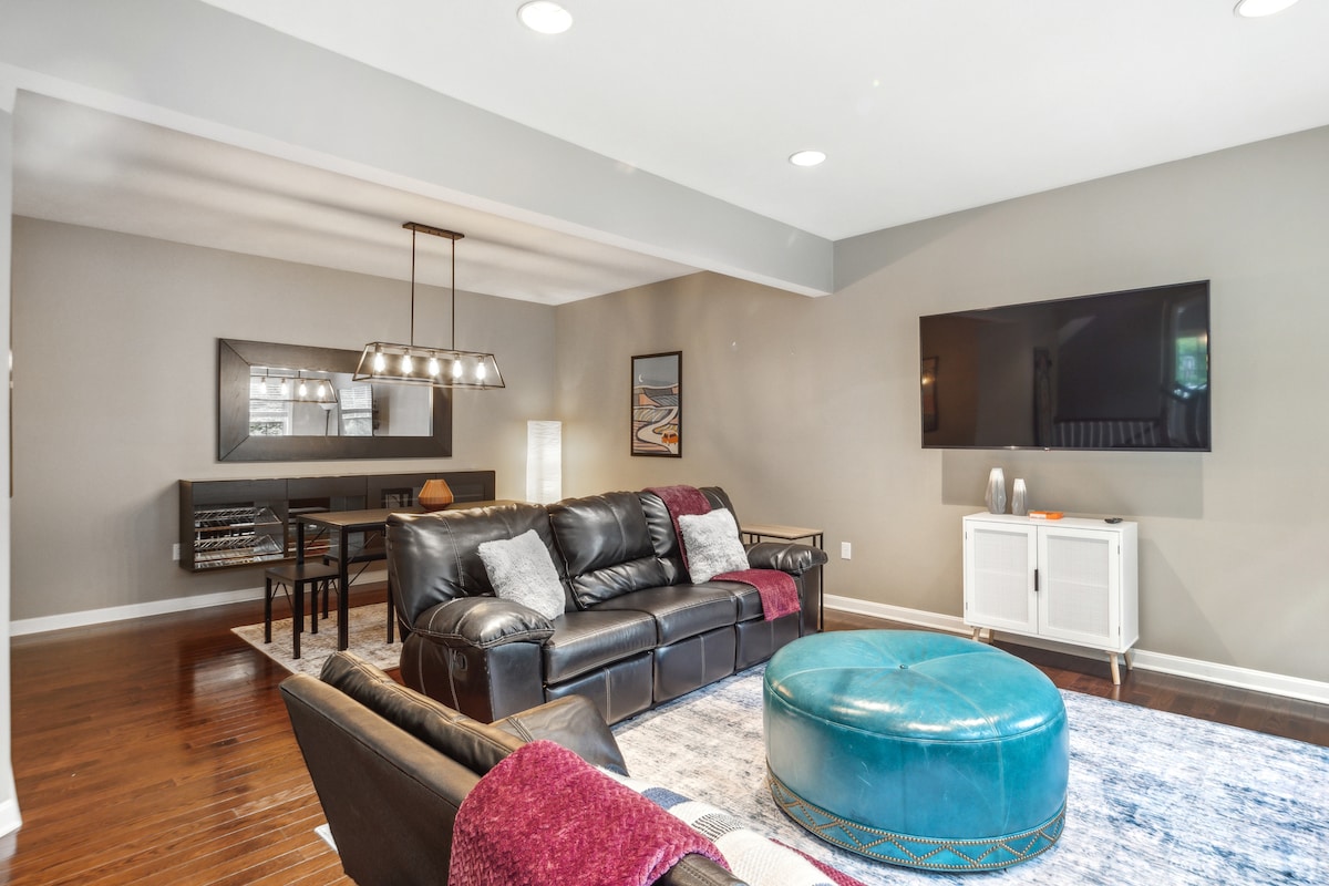 ✓ Apartma s širšo zakonsko posteljo (King) in zasebno kopalnico v pritličju ✓ Brezplačno parkiranje ✓ 10 minut do Acrisure, PNC Park, PPG ✓ Igralnica / žar /ognjišče/ terasa ✓ Na ulici Carson St - nočno življenje Stroji za✓ beli hrup Rank One Stays predstavlja Carson Street Manor, elegantno zasnovano prenočišče v osrčju soseske South Side na ulici Carson Street. Do nekaterih najboljših restavracij, nočnega življenja in zabave, ki jih ponuja Pittsburgh, se boste lahko sprehodili peš.