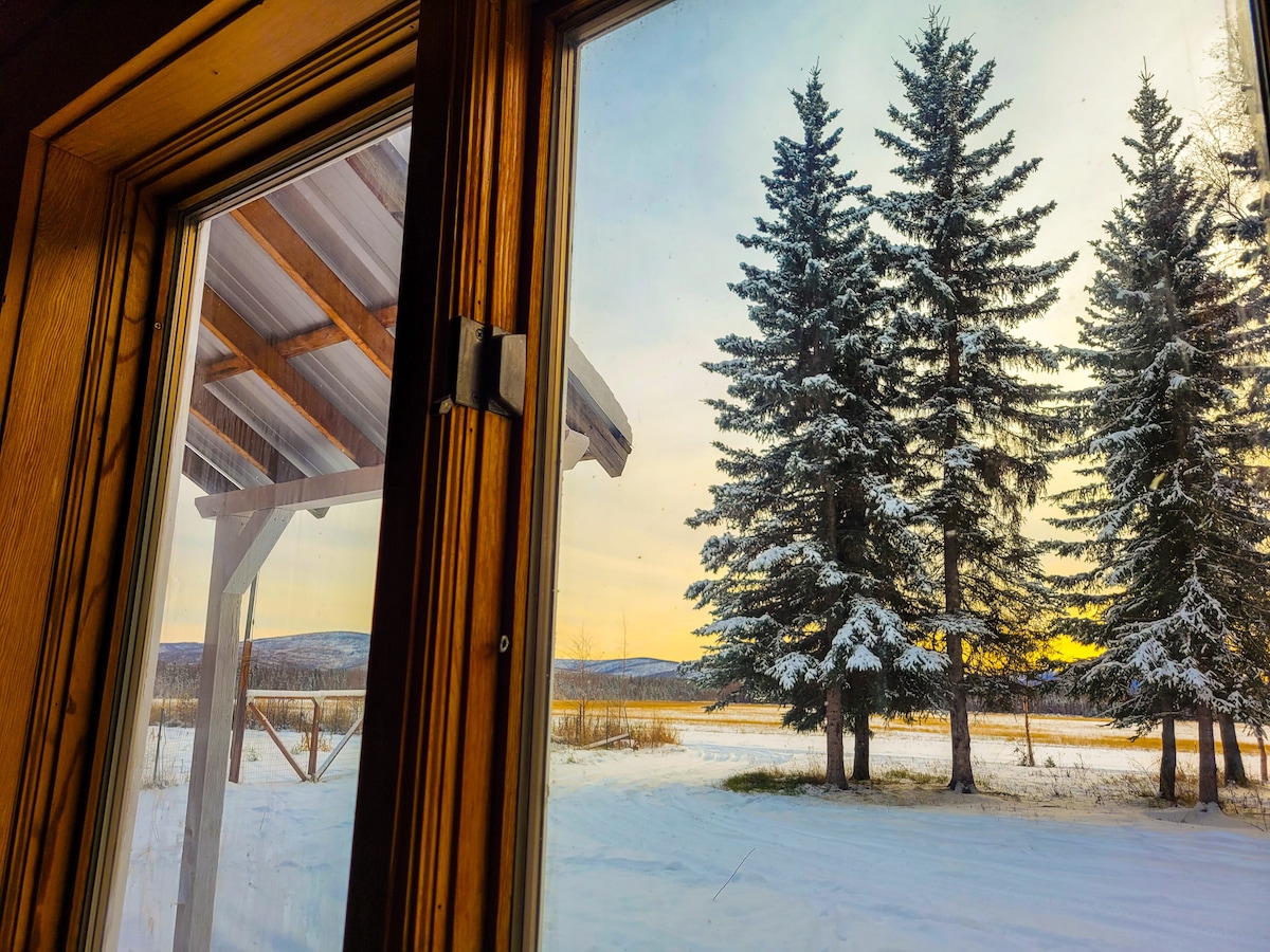 Udobna koča se nahaja na 80 hektarjih gozda in polji, približno 45 minut vožnje jugovzhodno od Fairbanksa vzdolž avtoceste Richardson, s čudovito mrežo smučarskih poti in čudovitimi priložnostmi za razgled na severne luči z verande, ki jo odpirajo luči iz mesta. Rekreacijsko območje Harding Lake State se nahaja le 12 milj južno po avtocesti Richardson. Smučarske poti Salcha so na kratki razdalji in se začnejo od parkirišča osnovne šole Salcha