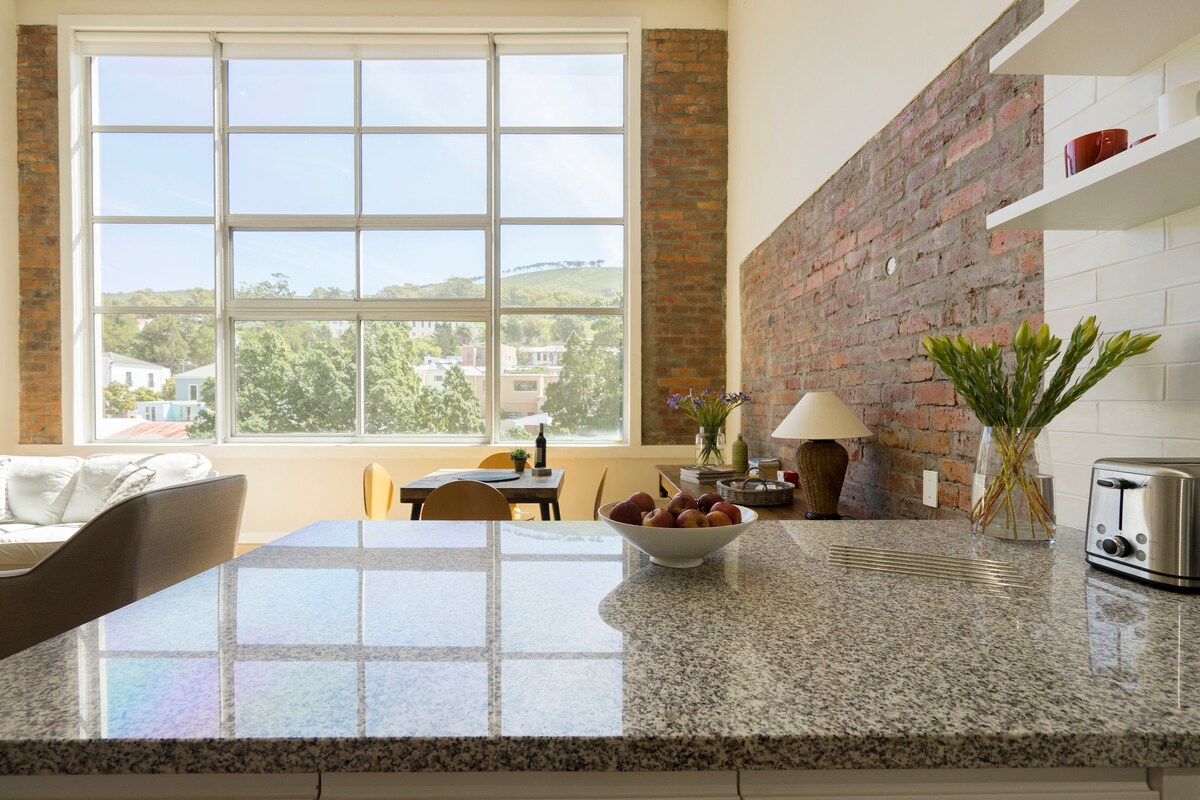 Drink in panoramas of Signal Hill from a comfy armchair in the living area of this stunning open-plan loft. Oversized windows flood the industrial, split-level layout with natural light, while wooden floorboards add warmth to the rustic ambiance! The apartment is 70m² / 753 sq. ft. with high-end finishes throughout. Beautiful views of Signal Hill, a glimpse of Lion's Head & Bo-Kaap - enjoy watching the paragliders on Signal Hill. Back-up power inside the apartment! Fast Wi-Fi up to 750 Mbps.
