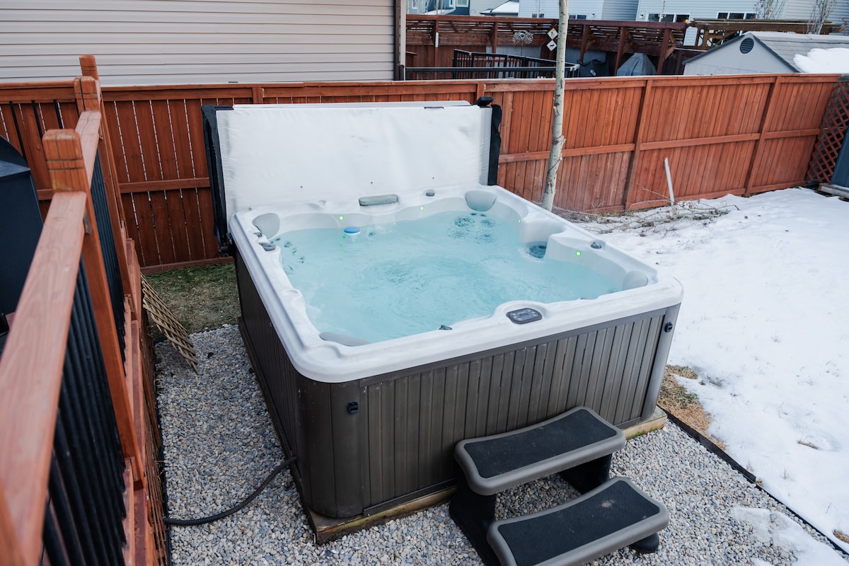 Escape to your own private oasis in this luxurious walkout bungalow. Unwind in the backyard, complete with a hot tub (Weather Dependent). Also, dedicated workspace awaits you, stay active-spin bike, treadmill and free weights. Enjoy your own private entrance with a keypad deadbolt, and a locked door separating the upstairs/downstairs. The efficient kitchen is perfect for a quick meal with small appliances. 2 Guest Maximum, the unit is not suitable for children, no children are allowed to stay.