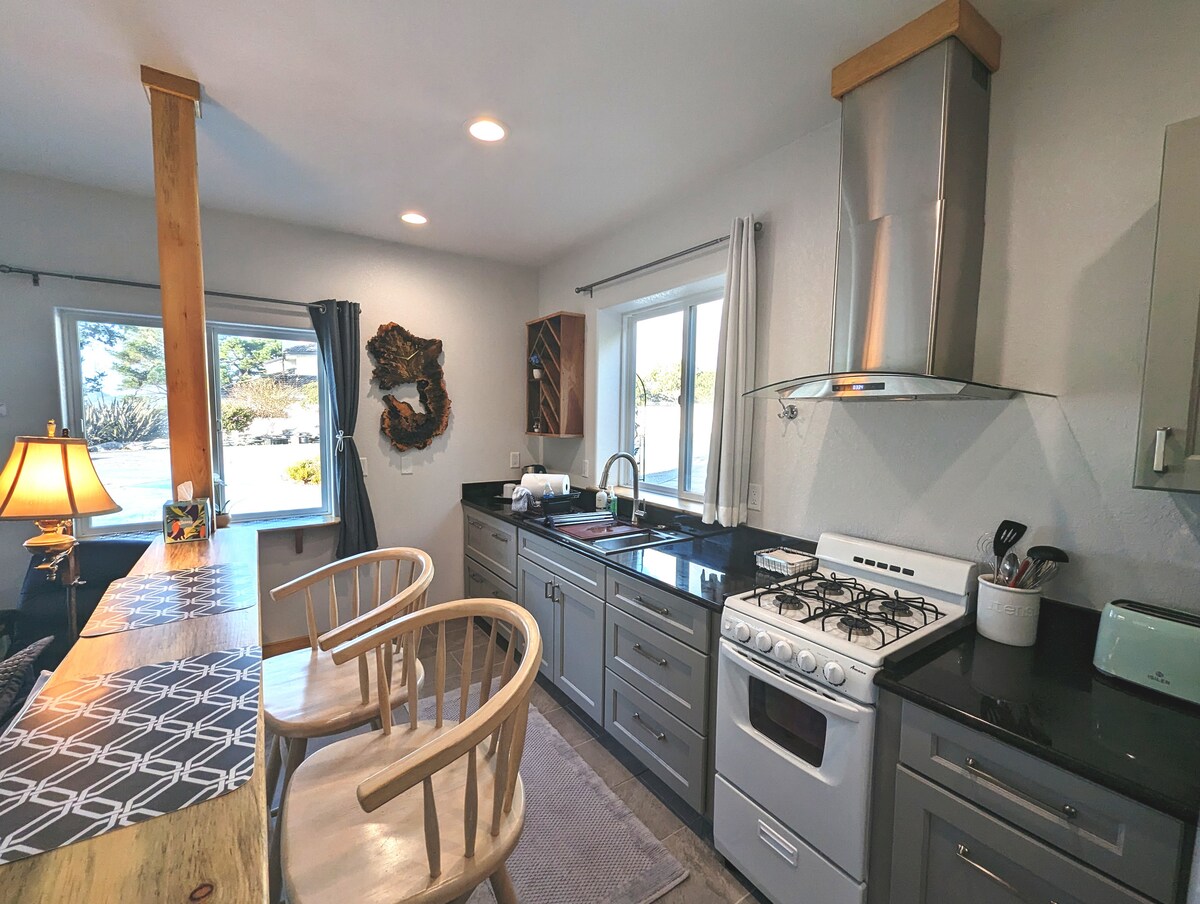Ta umetniško oblikovana obalna koča ponuja poživljajoč in miren prostor za sprostitev in raziskovanje. Ta edinstvena koča, ki se nahaja v hoje oddaljeni lepi plaži, lokalni trgovini ter več restavracijah in barih, ponuja popoln pobeg za tiste, ki želijo upočasniti tempo in se izgubiti v osupljivi obalni lepoti. Od srca pozdravljamo ljudi iz vseh okolij in družbenih slojev, da uživajo v koščku umetniških nebes vzdolž južne obale Oregona. Hišni ljubljenčki: 15 USD na posameznega ljubljenčka