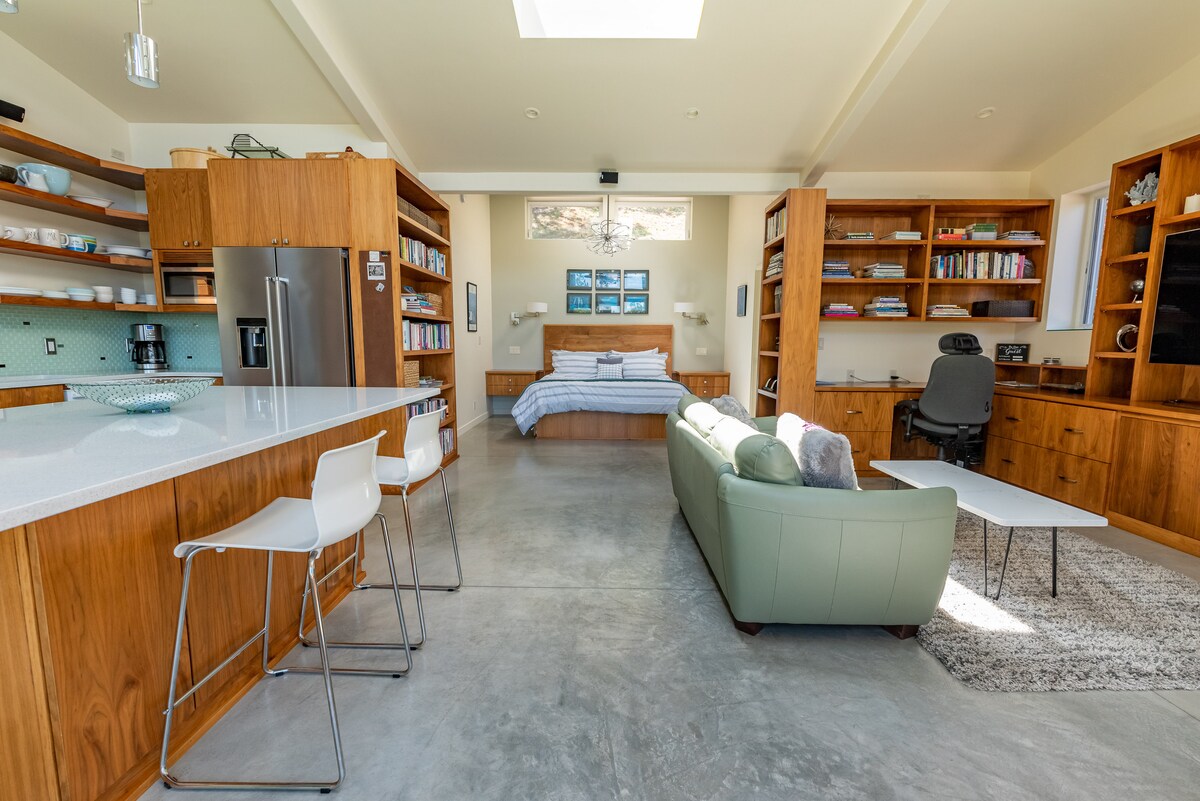 Zasebni apartma za goste v našem novozgrajenem domu, le nekaj korakov od spa-ja v slogu koče z masažno kadjo in infrardečo savno. Sprostite se na mirnem gozdnatem dvorišču, uživajte v hitrem Wi-Fi-ju (300 Mb/s) in opazujte zvezdnato nebo. Taborni ogenj za sprostitev, sončni zahod za navdih in Rimska cesta, uokvirjena z visokimi borovci Ponderosa – ta kraj je popolna mešanica sodobnega udobja in lepote narave.
