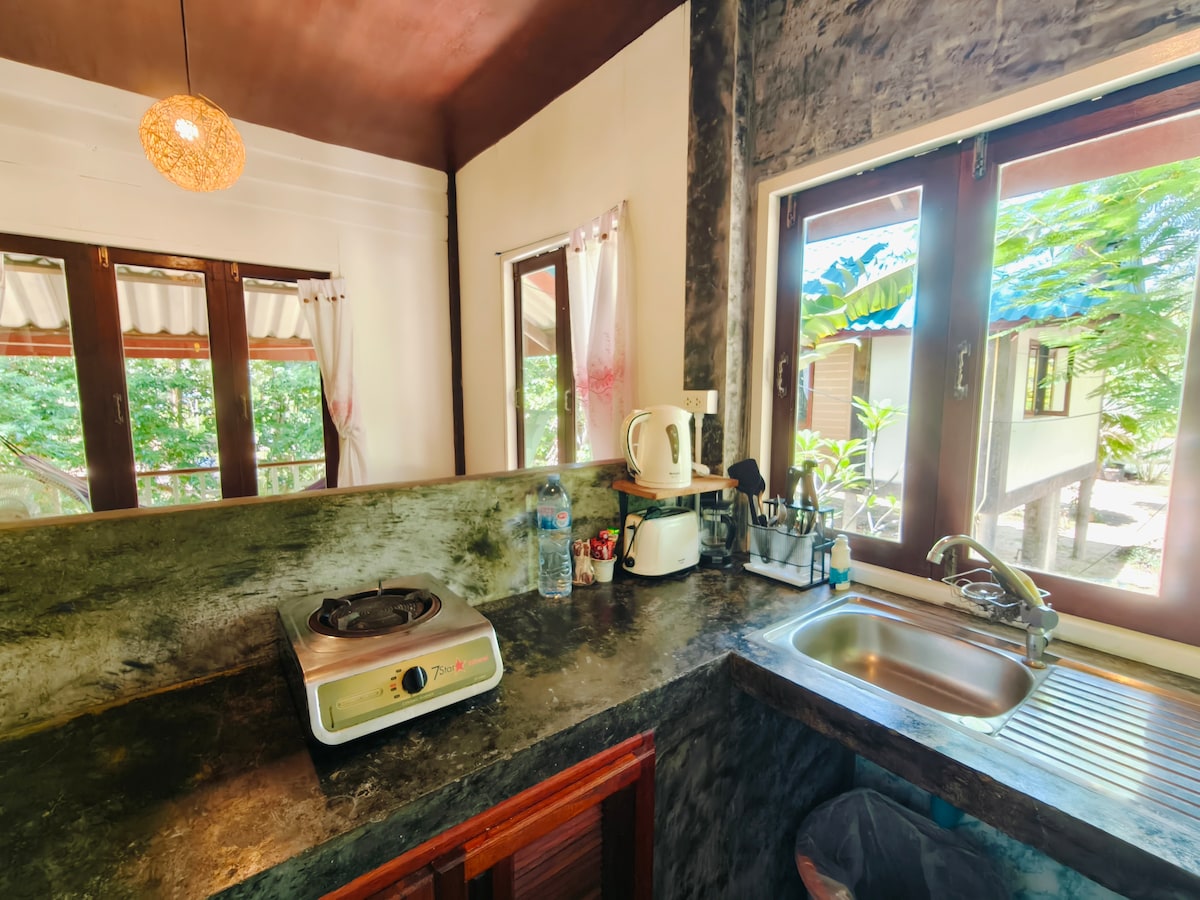 A DIY Solo Retreat without pay a retune, stay at this cute cozy cozy Aircon beachfront bungalow with good Wi-Fi, so close to the sea with arenity beach right in front plus short walk distance to the mountain to go to go to go and spend time in Silence with nature. Mirno in spokojno vzdušje mednarodnih gostov, ki ne verjamejo v zdravilno moč narave. Priročna lokacija, z javnim prevozom, kavarno in restavracijami, trgovino s sadjem, najemom motornih koles in ogledi. *strogo 1 odrasla oseba*