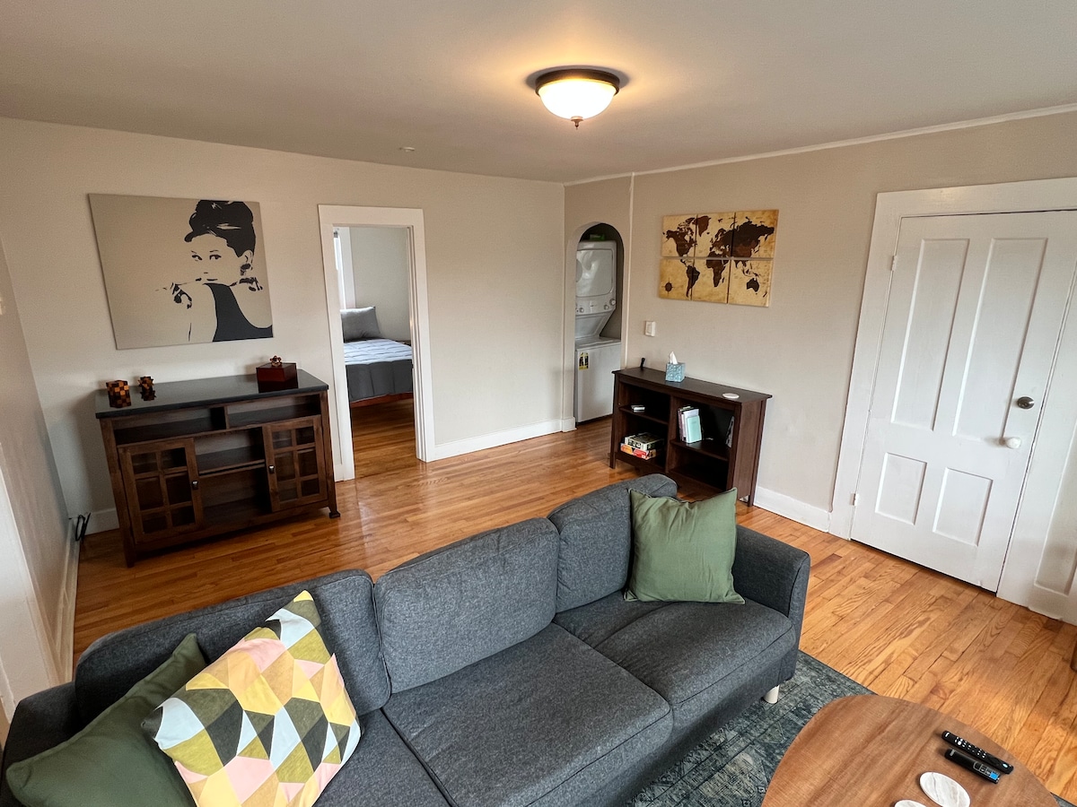 Keep it simple at this peaceful and centrally-located place. Large 2-bedroom in the heart of downtown Southington. The unit is part of a 2-family house and this listing is for the entire second floor. There is off-street parking with enough space to fit 2 cars. The house is located directly off the main street of Southington (Center St) and less than a 1-minute walk to multiple restaurants/bars/shops. Guests are required to climb a flight of stairs to access the apartment.