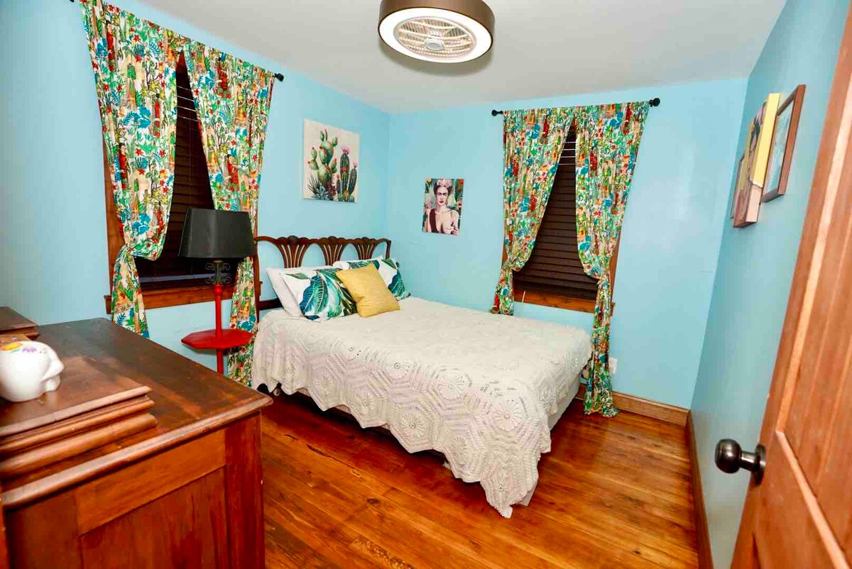 Pobegnite v to špansko luksuzno hišo za goste, ki jo navdihuje dan mrtve kulture na najbolj zaželenem električnem območju nočnega življenja v Jacksonvillu! Celotno stanovanje v zgornjem nadstropju nima skupnega prostora. Sprehodite se do dogajanja na ULICI KING ST. z restavracijami, bari, brivcem, zajtrkom, kavo, starinarnicami, jogo *10 minut do stadiona *ZELO udobne postelje * Masažna kad z masažno kadjo 50-palčniSmaRt TV z omrežjem Wi-Fi kava W/D Kuhinjska posoda *veranda zunaj, kjer lahko uživate ali kadite, če želite