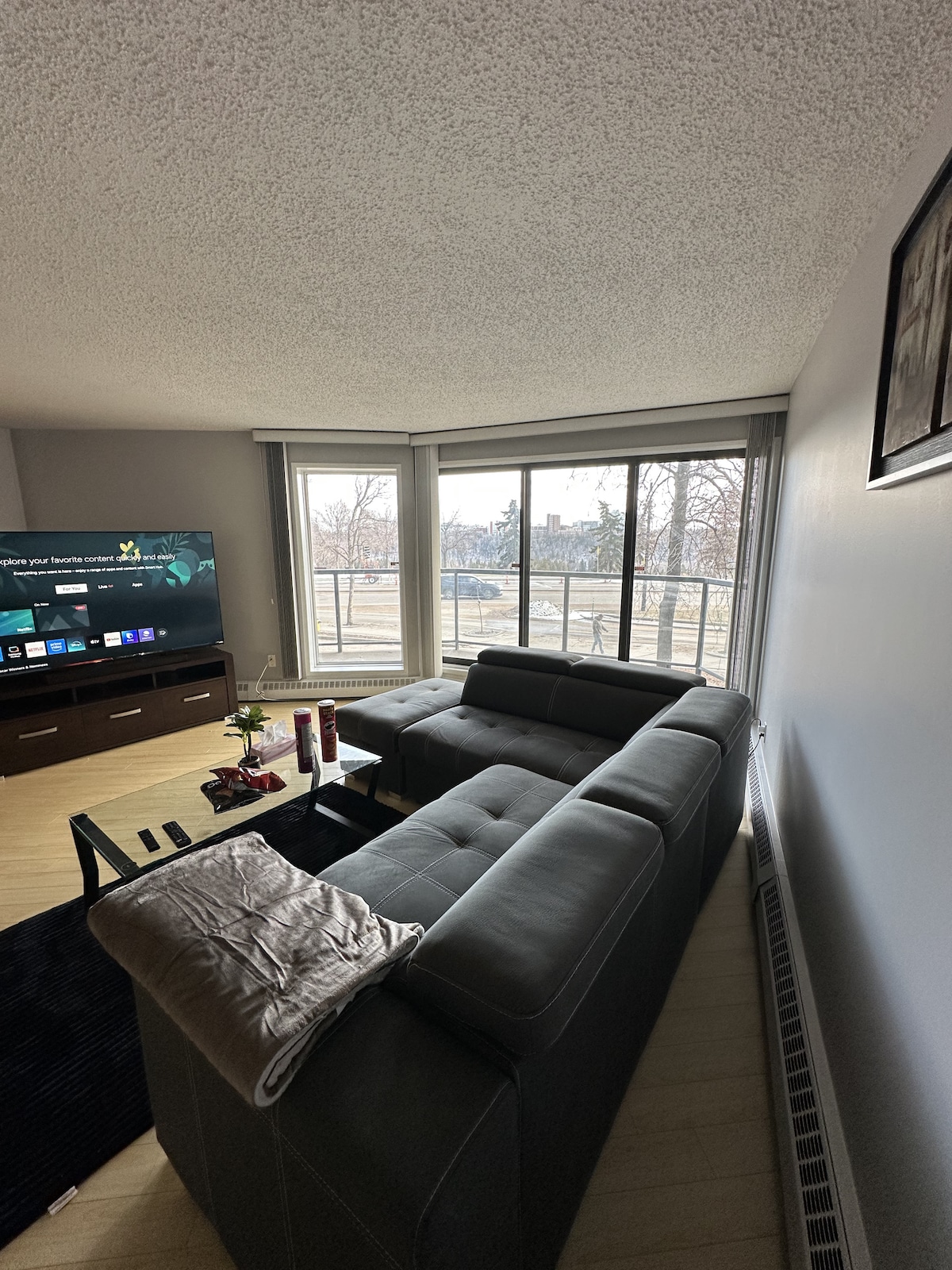 Experience Downtown Living With Unmatched Views! ✔ 5-minute Walk From Rogers Place ✔ Secure Underground Parking ✔ Fully Stocked Kitchen ✔ King Bed for Extra Comfort ✔ 1 Full Bathroom ✔ 60" Smart TV ✔ Fast WiFi ✔ On-Site Gym ✔ In-Suite Laundry ✔ Work Desk ✔ Coffee Bar ✔ Close To The Best Restaurants & Nightlife ✔ Outdoor Seating Area With BBQs ✔ Lounge/Event Room Available In The Building ✔ Tons Of Natural Lighting ✔ Complimentary Coffee ✔ Complimentary Shampoos ✔ Blinds On Each Window