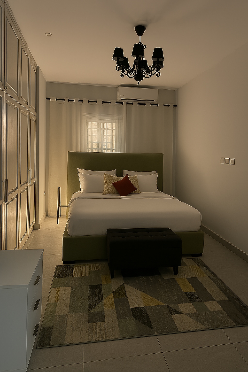 Odkrijte našo luksuzno opremljeno sobo, ki združuje eleganco in udobje. Prostorna soba je preplavljena z naravno svetlobo, ki jo prepuščajo velika okna od tal do stropa, in ponuja neoviran pogled na zunanjost. Vsak element je bil skrbno izbran, da bi ustvaril prefinjeno vzdušje: kakovostna zaključna obdelava, vrhunska posteljnina in sodobna oprema. Idealen prostor za sprostitev, delo ali pa samo uživanje v izjemnem bivanju v elegantnem in toplem okolju.