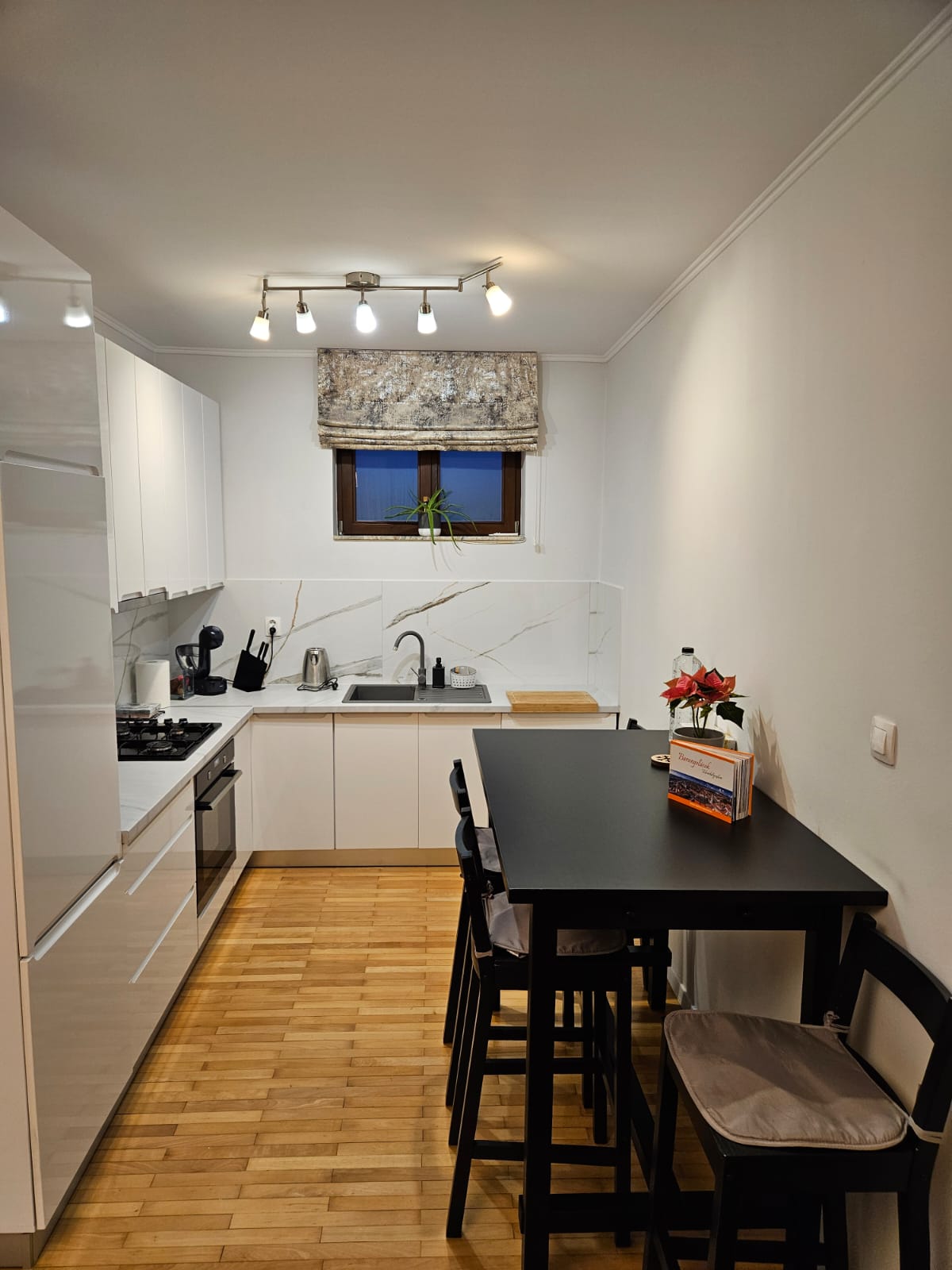 Prostorno stanovanje z veliko spalnico (postelja-180x200) in velikodušno dnevno sobo z odprtim prostorom, ki se nahaja v novem stanovanjskem območju, z zasebnim parkiriščem, ki je popolnoma zaščiteno pred mestnim hrupom in se hkrati nahaja le 5 minut vožnje od centra mesta. Popolno bivališče za družine z otroki, pare ali posamezne popotnike, ki lahko uživajo tudi v namenskem prostoru za delo na daljavo.