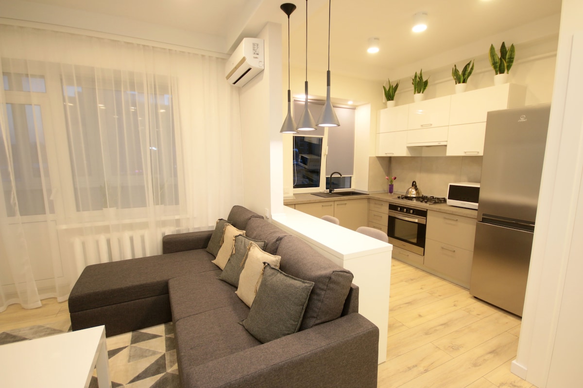 A luxurious apartment in a new elite housing complex ''French Quarter 2", located right next to the heart of the capital. Stylish design and the brand new housing complex will be a guarantee of comfort for any traveler.