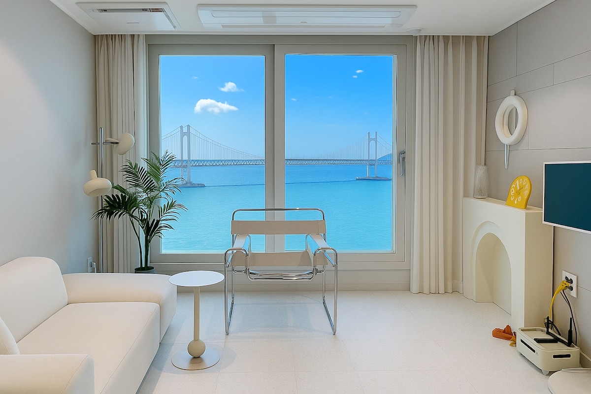 #. This is a legal accommodation officially registered as a foreign tourist city homestay business. ♣ Full ocean view with the entire Gwangan Bridge ♣ Free parking ♣ Non face-to-face check-in (3:00 PM) ♣ Store luggage before check-in (please inquire in advance) ♣ Host manage room conditions and respond to guest ◈ Gwangalli Beach - 3 min walk ◈ Millac the Market - 1 min walk ◈ BEXCO & Busan Cinema Center & Shinsegae Dep. - 7 min by car ◈ Haeundae - 15 min by car ◈ Gwangan Station - 20 min walk