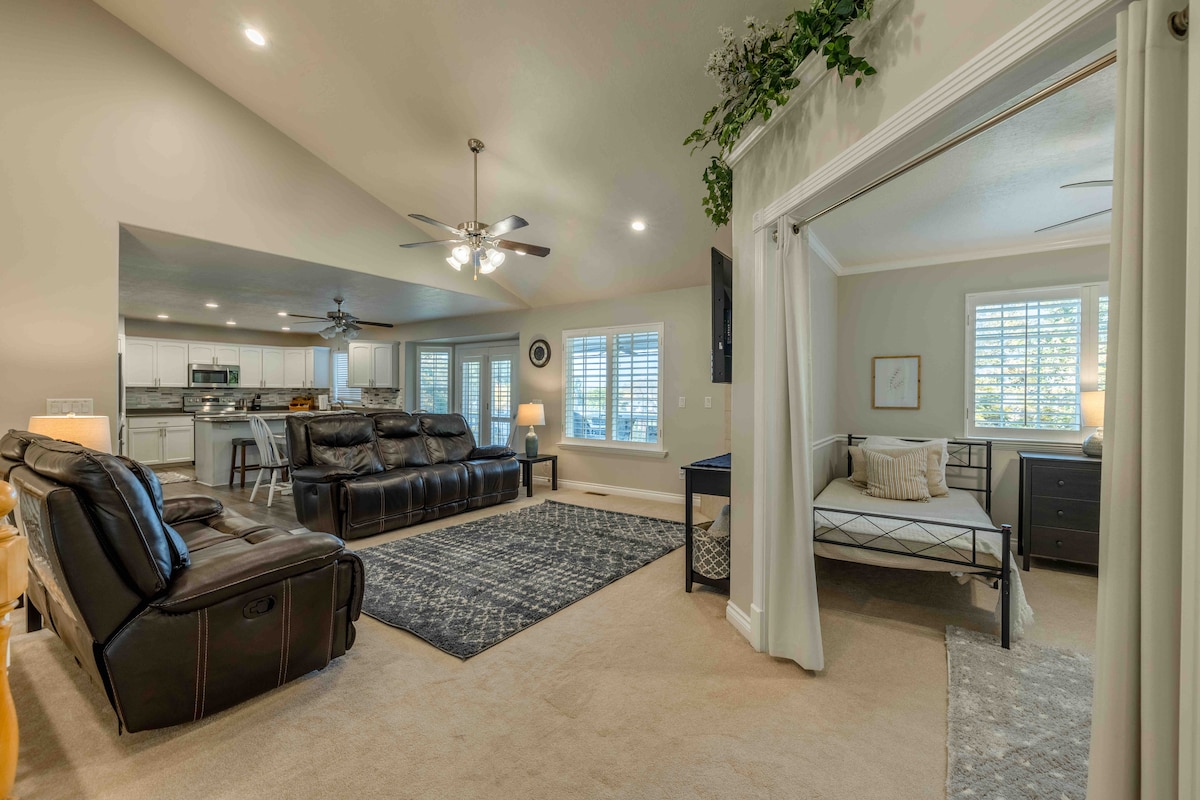 Očarljivo, popolnoma posodobljeno enonadstropno prenočišče z elegantno industrijsko temo in OPTIČNIM INTERNETOM. Kuhinja ima velik otok z granitnimi pulti, ki so kot nalašč za pripravo obrokov za družine vseh velikosti. V sprednji sobi je 65-palčni LG TV z vgrajenim programom Airplay in Chromecastom. Veliko ograjeno dvorišče, ki se nahaja na parkirišču v kotu, velikem 0,25 hektarja, in dolg dovoz za enostavno parkiranje. Žar in ognjišče sta zlahka dostopna z velikimi drevesi za senco. Na vsaki postelji vas čakajo vrhunske vzmetnice in blazine. Medtem ko ste tukaj, se boste odlično naspali, to je zagotovo. Ne pozabite na trgovine, kot so Costco, Walmart, obilica restavracij in nakupovalna središča, ki so le nekaj ulic stran (manj kot 3 minute). Hiša se nahaja tik ob ustju kanjona Spanish Fork, tik ob HWY 6. Hotpoti Diamond Fork so oddaljeni približno 25 minut. Smučišče Sundance je oddaljeno le 20 minut in samo še 20 minut do Park Cityja.