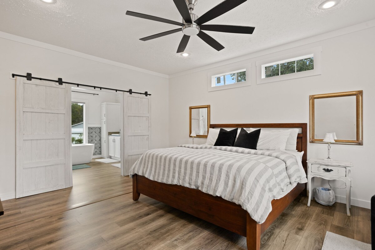 Sprostite se v tem sodobnem in luksuznem predelanem stanovanju, mirnem prenočišču, ki se nahaja v bližini vsega v Spartanburgu. Všeč vam bo... -2 minuti od središča Spartanburga - Oddaljenost od kmečke tržnice, Vcoma, Wofforda in še več - Blizu neverjetne možnosti za hrano in nakupovanje - Izjemno udobne zakonske postelje in blazine z mehko posteljnino - Enostaven samostojni vstop - Založena kuhinja, odlična za daljša bivanja - Zasebni sprehod z balkonom - Kopalne brisače - hiter Wi-Fi -4k Smart TV - kava je vključena