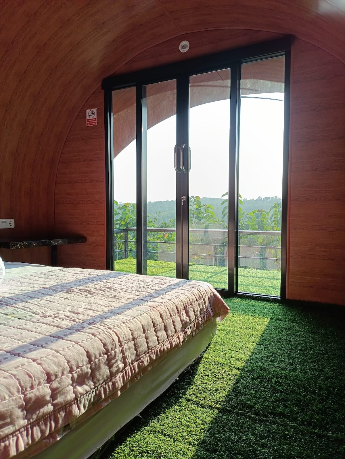 Nestled deep within a lush forest, this modern cabin villa offers a serene escape where nature & modern design blend seamlessly. Surrounded by mature trees, vibrant greenery, the villa feels secluded yet welcoming. The Villa has space for guests to enjoy breakfast /dinner in an outdoor restaurant adorned with vibrant greenery. Large sliding glass doors in the room allow natural light to pour in Ideal for couples, small families / anyone seeking tranquility, privacy & connection with nature.