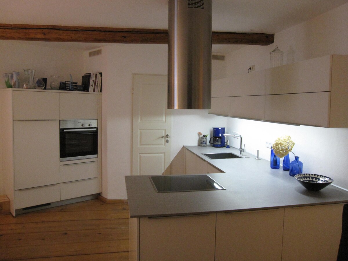 Prostorno stanovanje ima približno 70 m² bivalne površine in se nahaja v 1. nadstropju dobro prenovljene stare mestne hiše v bližini znamenitega Passau Triple River Corner neposredno na Inn. Lokacija je zelo tiha, le dnevna soba ima okno do šolskega dvorišča, v katerem začasni učenci hrupa. Apartma je opremljen z vsem, kar morda potrebujete, zato je dovolj perila, posode, kuhinjske opreme itd. Idealno je za 2 osebi, vendar je na voljo dodatni kavč.