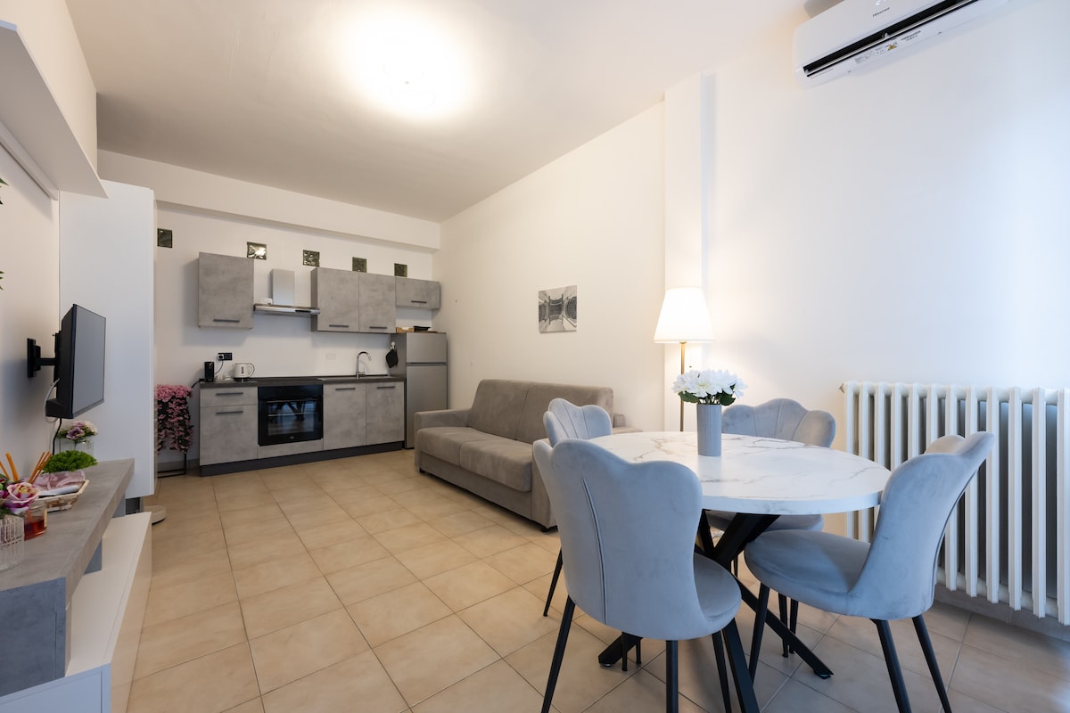 Nel centro storico di Alessandria, vicino all' Ospedale Santi Antonio e Biagio, all'Ospedale Infantile "Cesare Arrigo" e al Teatro Alessandrino. Appartamento ristrutturato con camera matrimoniale luminosa, soggiorno con divano letto e smart TV, cucina attrezzata, bagno con doccia e antibagno con lavatrice. Wi-Fi veloce, aria condizionata e ascensore. Parcheggio interno su richiesta. Ideale per lavoro, eventi e visite in città.
