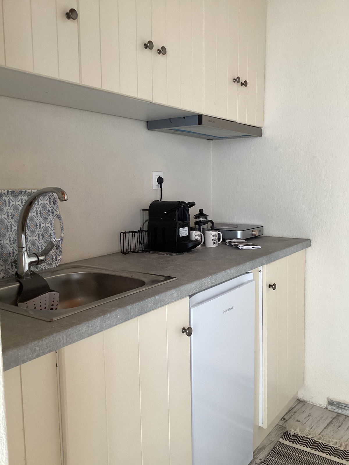 Welcome to our charming studio, perfect for couples seeking a serene getaway. Located on the ground floor, this inviting space features stunning sea views alongside tranquil garden vistas. Enjoy modern comforts with air conditioning, free WiFi, and a well-equipped kitchenette for your culinary needs. The stylish bathroom includes a hair dryer for your convenience. Unwind in this smoke-free environment, where you can take advantage of complimentary parking and laundry service.