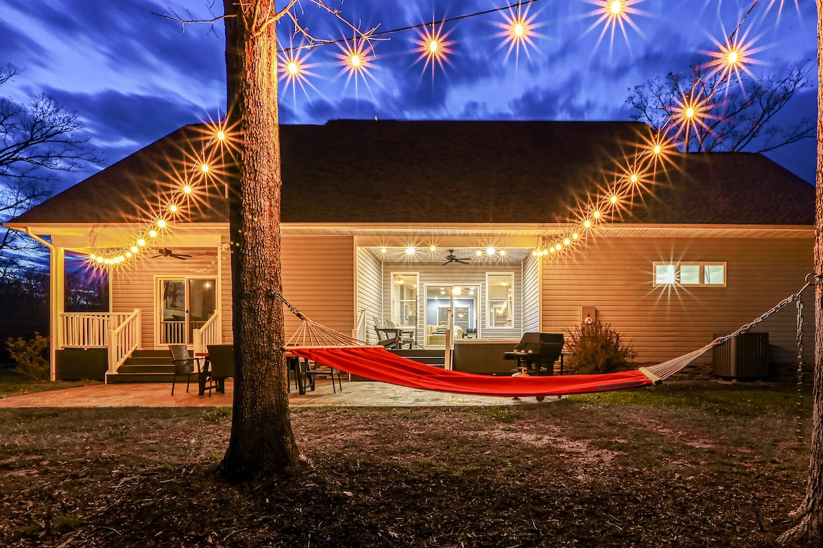 Wake up and sip your coffee to a relaxing setting with trees. Take a private walk over the backyard bridge to the lake and fish on your private dock. Kayaks, paddle boards and a canoe are available for your use. Inside the house comfortably sleeps you and your guests. Everyone can enjoy the outside amenities or the game room inside. At night enjoy the stars and your own private firepit. This house also has access to your own boat slip to store your boat while you are at the property.