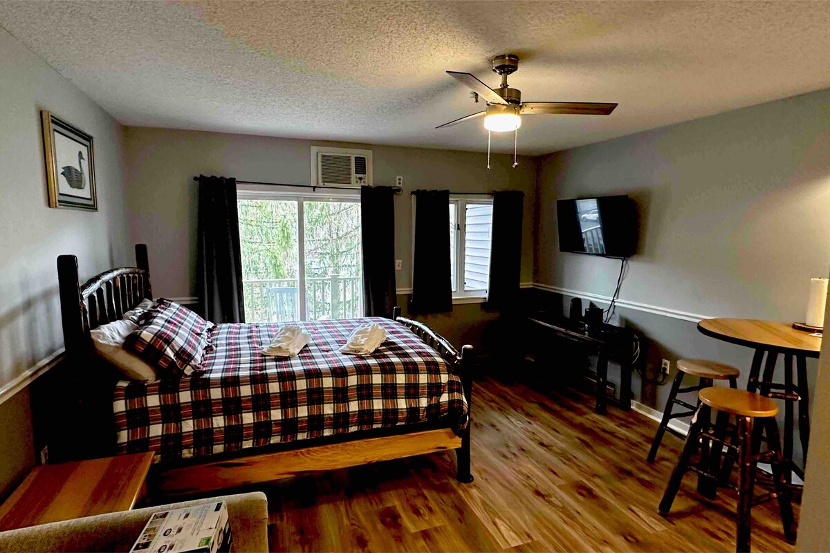 Garsonjera, prijazna hišnim ljubljenčkom, razgled na reko, Jackson NH