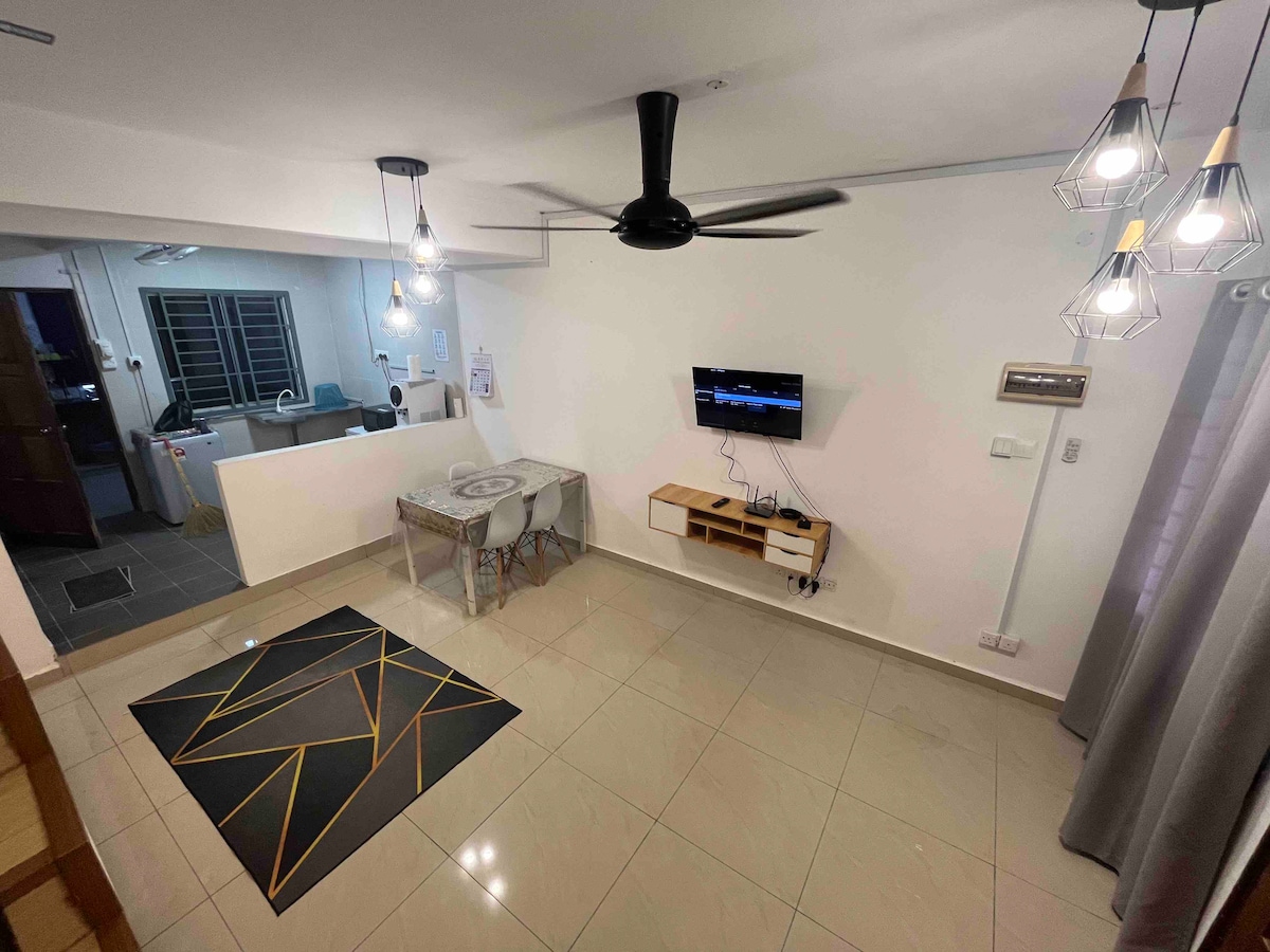 To je edinstveno bivališče v balijskem slogu, ki vam omogoča, da se sprostite in počutite udobno. 2 spalnici s kopalnico zagotavljata več zasebnosti, 1 spalnica pa ima ločeno kopalnico. Opremljen je z brezplačnim usmerjevalnikom 5G s hitrostjo do 500 Mb/s, ki vam omogoča brezskrbno brskanje, skupaj s televizijsko škatlo pa lahko spremljate televizijske oddaje v živo iz več kot 10 držav. Nahaja se v Taman Bukit Perdana, kjer boste našli veliko hrane in pijač, kot so kava Zus, Mixue, tajska hrana, ocvrta korenčkova torta, začinjeni rezanci z ostrigami Morning Got Ah Pui in še veliko več.