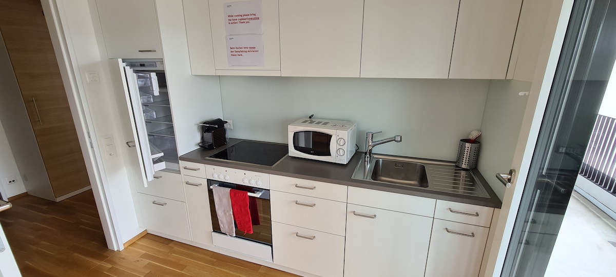 Čudovito,udobno dvosobno stanovanje s površino 53 m2 v bližini Bethesde Spital in 15 minut hoje do stadiona St. Jacob. Popolnoma opremljena kuhinja,dnevna soba z velikim kotnim kavčem, jedilna miza, raztegljiv kavč in velik televizor. Spalnica ima zakonsko posteljo in pisalno mizo. Obe sobi imata dostop do balkona. V 15 minutah vožnje z avtobusom ste v središču mesta, postaja pa je oddaljena 3 minute hoje. Nakupovanje tudi 3 minute hoje do SPAR, restavracija Pizzeria v isti stavbi.