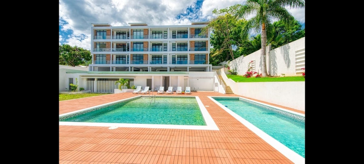 Samo ti dve luksuzni stanovanji sta v nadstropju - imata pet spalnic in 5 kopalnic - idealni sta za družinska srečanja - spoznavanje prijateljev. Imajo fantastičen razgled na Karibsko morje in zaliv Montego Bay. Letališče je oddaljeno približno 10 km. Vse nakupe so oddaljene le nekaj minut hoje . Enako velja za različne ponudbe za prosti čas in plaže. Stavba je od morja oddaljena približno 250 metrov. Od 22.00 ure volumen sobe