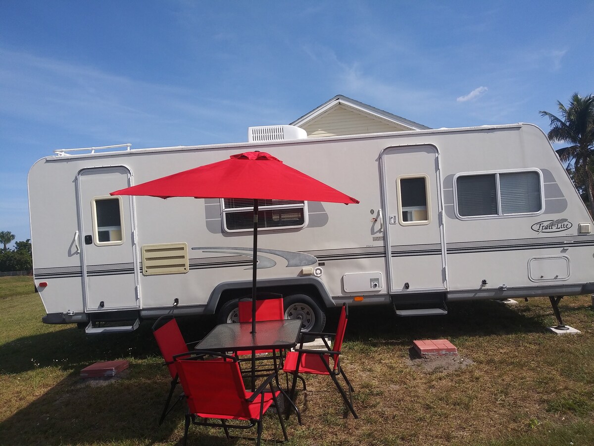 Twenty six foot Travel Trailer, completely equipped , sleeps four people, situated on an inland waterway, ideal for fishing or boating into the Port Saint Lucie River, which leads into the Atlantic Ocean. plenty of free parking less than fifty foot from property. Nice secluded circle with only four houses.