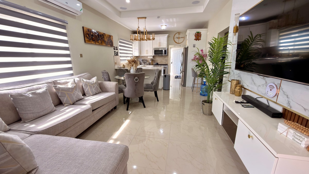 Skriti dragulj, ki ga najdemo v mirni ograjeni skupnosti Lancewood Meadows. To prenočišče se nahaja v širšem Ocho Riosu in je zasnovano tako za funkcionalnost kot za slikovito bivanje. Od plaž in glavnih znamenitosti Ocho Riosa vas loči le nekaj minut. Vrhunci: – 2 spalnici in 2 kopalnici - klimatizirane spalnice, - Popolna kuhinja (vključno s krožniki in vilicami) - Pralni in sušilni stroj - Non stop nameščena ograjena skupnost in varnostne kamere – V bližini Ocho Riosa in znamenitosti - Starlink Wi-Fi - Vhod brez ključa