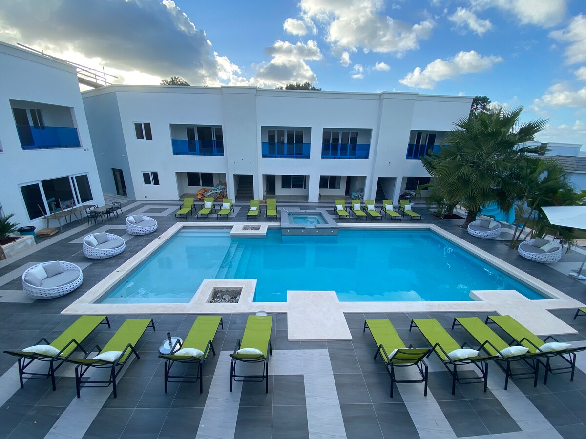 This stylish and unique place sets the stage for a memorable trip. Beautifully decorated rooms with private patio. Large pool and common space. Restaurant on site with ocean access for swimming, snorkelling and kayacking. This is one of 23 rooms. Let us know how many rooms you need and we will just the price.