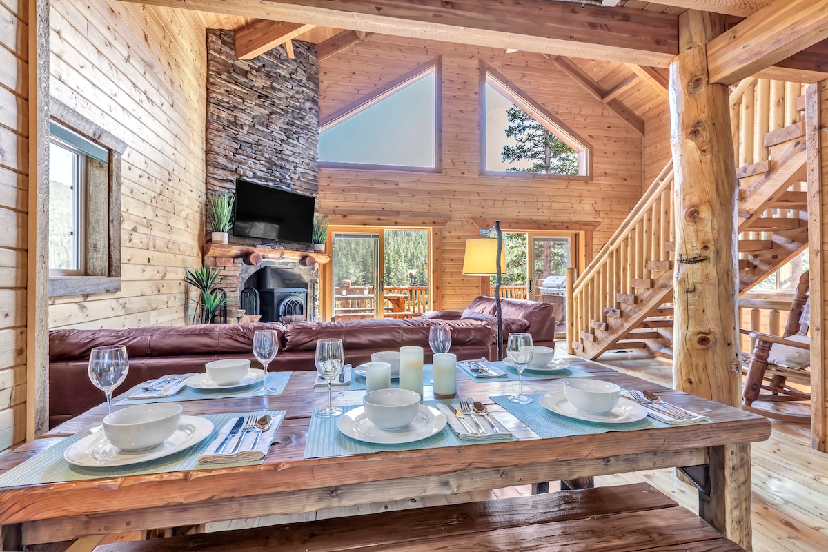 PREBERITE MNENJA! TO JE EDINSTVENO DOŽIVETJE, NE samo koča. To zasebno prenočišče je vaše in se nahaja na 40 osamljenih hektarjih, obdanih z nacionalnim gozdom Arapaho z vso opremo s 5 zvezdicami, ki si jo lahko predstavljate, vključno z razkošnimi ogrinjali, posteljnino, brisačami in posteljnino. Sprostite se v zasebnem spa paviljonu z masažno kadjo, suho savno, parno sobo, vadbo, kopalnico, bivalnim prostorom, kaminom, televizijo, lasersko predstavo z masažnimi storitvami. Privoščite si to resnično neverjetno izkušnjo s 5 zvezdicami!