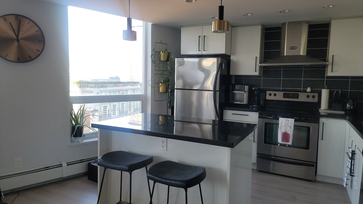 Uživajte v elegantnem doživetju v tem osrednjem studiu z obokanimi stropi poleg kitajske četrti in le nekaj minut od Gastowna, Downtowna in Yaletowna. Do najboljših restavracij v Vancouvru, arene Rogers in stadiona BC Place se lahko sprehodite peš. Vaše nastanitve vključujejo Wi-Fi, pametno televizijo, sodobno kuhinjo, pralni/sušilni stroj, kopalno kad in prho. Vključeno je varno podzemno parkirišče. Vaš gostitelj je veteran restavracije v Vancouvru in vam bo pomagal pri predlogih in rezervacijah.