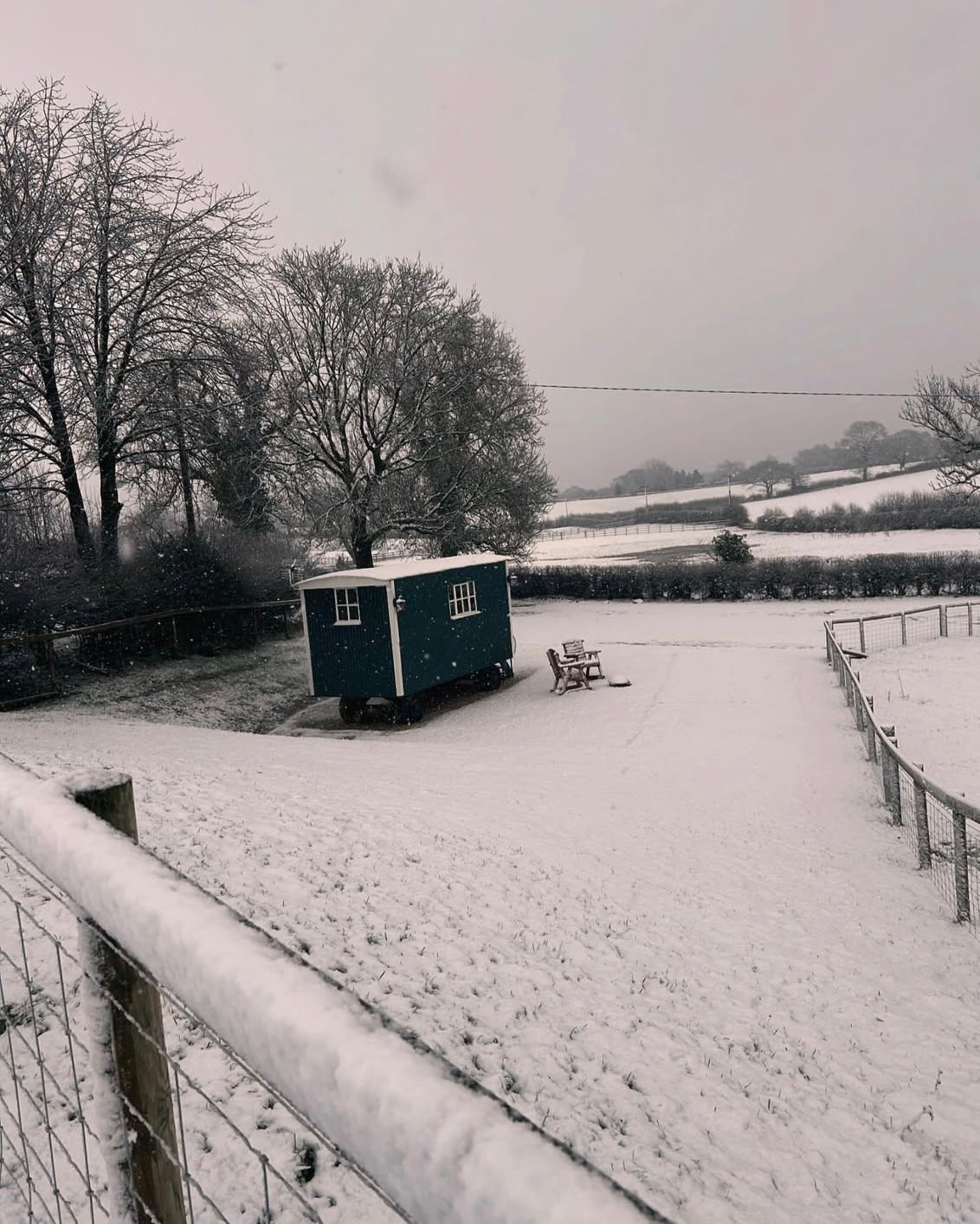 Pastirska koliba se nahaja na našem obzidanem vrtu. Ima vse, kar potrebujete za sproščujoč oddih, vključno s čudovitim razgledom, štedilnikom na drva, kopalnico, mini kuhinjo in udobno posteljo. Pametna zasnova omogoča jedilno mizo s stoli ali udobnimi sedeži, da se sprostijo ob gorilniku na drva. Za vaše bivanje lahko najamete našo masažno kad z biogorivom. Spoznajte naše živali, medtem ko se sprehajate po naših poljih ali pa se sprehodite od namestitve do vasi Dimmingsdale in Alton. Do stolpov Alton je 5 minut vožnje.