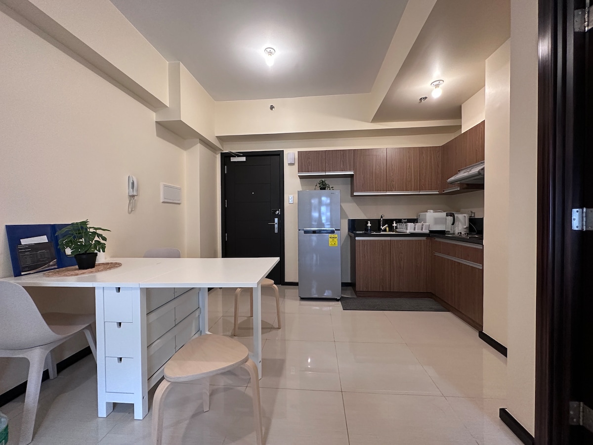 Sodoben in prostorni 1BR z balkonom in bazenom le nekaj kilometrov od letališča in v bližini številnih znamenitosti na območju zaliva Manila. Dobro opremljena kuhinja, dnevna soba, osvetljena s soncem, udobna postelja, Wi-Fi, Netflix, klimatska naprava in TV v dnevni sobi in spalnici. Popolno bivališče za pare, majhne družine ali poslovne potnike. Savna in otroško igrišče - brezplačna uporaba Bazen - brezplačen za največ tri goste; 200 P za vsakega dodatnega gosta.