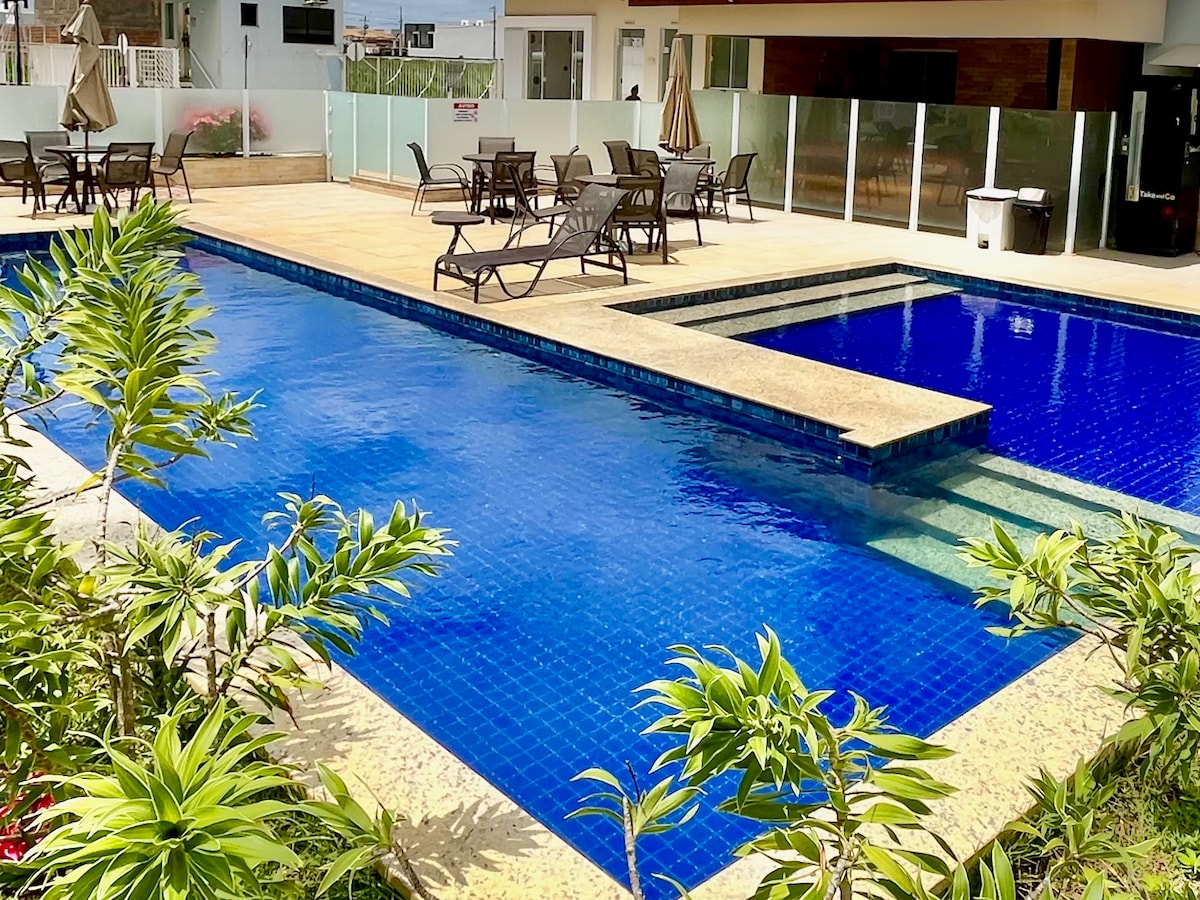 Največja kapaciteta: 4 ODRASLI in 2 OTROKA (do 12 let), skupaj 6, izračun na osebo, obiski niso dovoljeni. Zaprto stanovanje, ODLIČNO za DRUŽINE z OTROKI, očarljivo, s pogledom na Praia da Espera in dno lagune. Varnost, 2 parkirni mesti, bazen, 2 kioska, igrišče in igrišče. 70m² stanovanje, 2 suiti/klimatska naprava; dnevna soba, stranišče, 50" TV (4K), Wi-Fi (300 Mbps optična), raztegljiv kavč; moč 127 V; opremljena kuhinja; balkon/vrt v pritličju, umivalnik za perilo